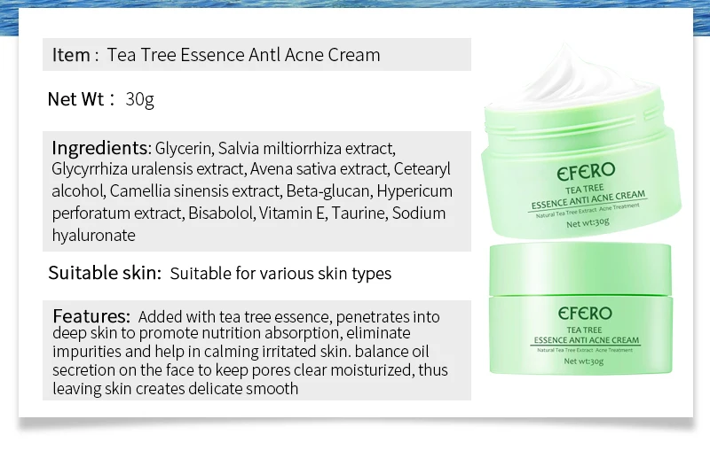 Добавляется с эссенцией чайного дерева, проникает в глубину кожи для улучшения поглощения питания, устранения примесей и помогает в успокаивающей раздраженной коже. Баланс секреции масла на лице, чтобы сохранить поры чистым увлажненным, таким образом, оставляя кожу создает нежную гладкость