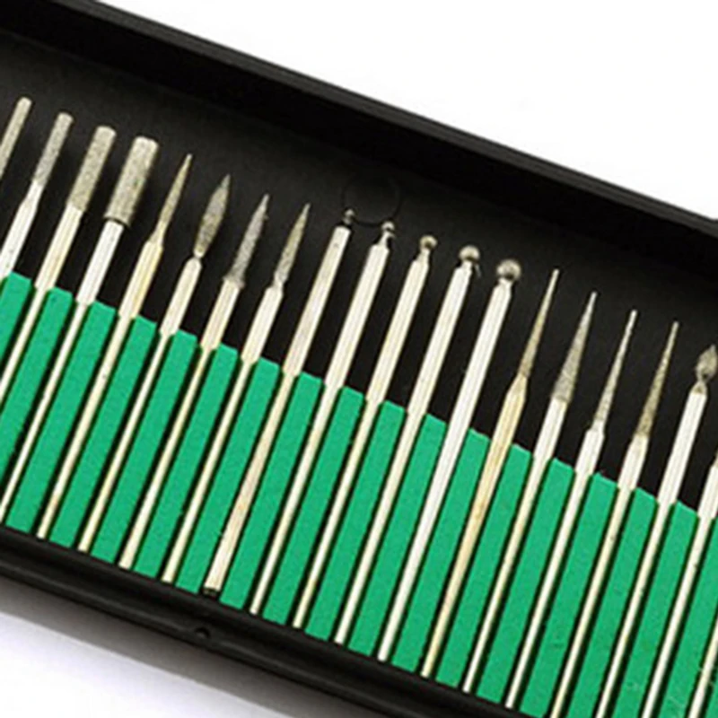 Хороший набор алмазных бит, которые будут хорошо работать для резьбы. Эти Алмазные биты идеально подходят для небольших частей из-за тонкого размера. Имея этот набор алмазных бит, вы можете просто показать свое творчество так свободно, как вы можете.