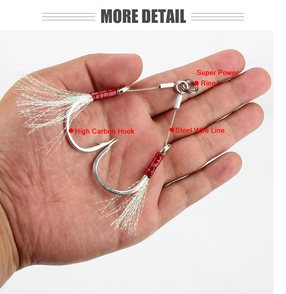 Spinpoler 2 пары/Лот 1/0 2/0 3/0 5/0 7/0 рыболовный крючок двойной джигхок Вибрационный крючок с перьями джиг Крючки помощь снаряжение рыболовные снасти