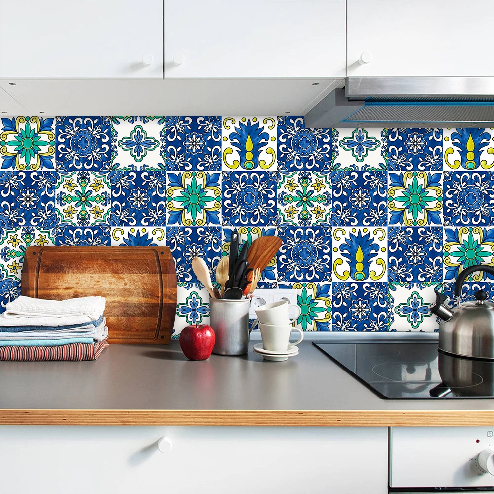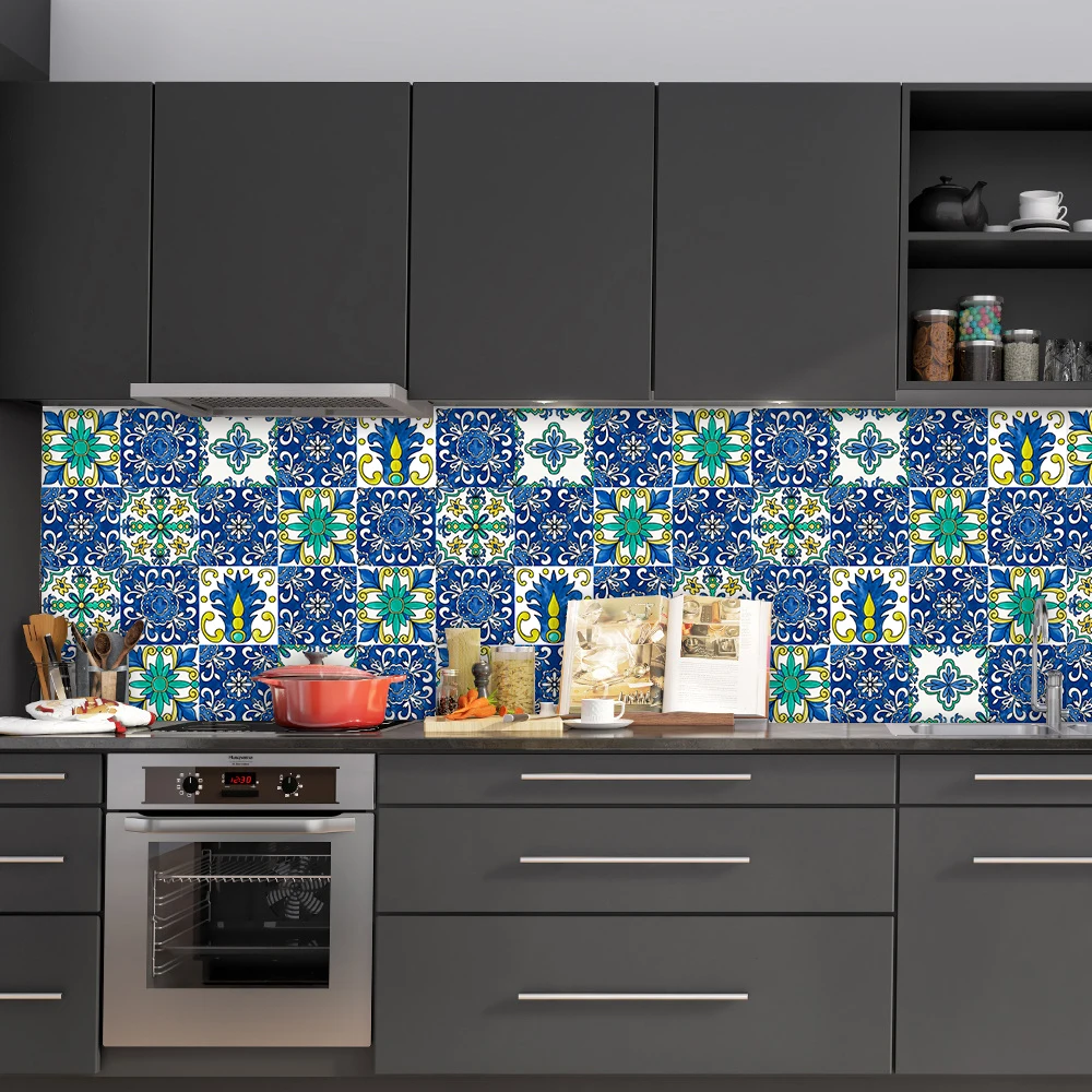 Испанский Стиль Цветочная текстура кристально твердый пол стикер для настенной плитки кухня домашний декор обои водостойкие напольный стол художественная роспись