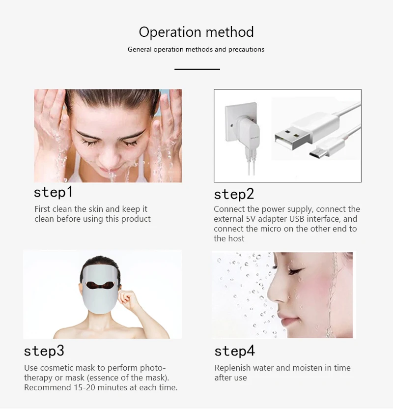 Особенности: 1. Светодиодный эффект маски для красоты: отбеливание кожи, сужение пор, гиперплазия коллагена, увеличение блеска и эластичности кожи, защита от старения, укрепление кожи, улучшение темных кругов, мешков под глазами, тонких линий, выцветание темных пятен и сухих пятен, способствует заживлению ран, улучшает состояние кожи, подавляет акне, Рановые бактерии, улучшают аллергическую кожу, развевают красную кровь, ускоряют поглощение продуктов по уходу за кожей, улучшают качество сна. Это Многофункциональная СВЕТОДИОДНАЯ маска для лица. 2. 32 светодиодный светильник s портит кожу, кожа в светильник волновой облучения, наслаждайтесь светильник для спа интенсивной терапии. Экономит ваше время. Это легко сделать красоту дома, нужно всего 10 минут. Наслаждайтесь комфортным и спокойным моментом красоты кожи. 3. Активированный коллаген: способствует росту коллагена кожи, делает кожу более полупрозрачной и отбеливающей. Затягивает поры: затягивает поры, делает кожу более упругой, улучшает яркость кожи, более гладкой и эластичной. Ускоряет детоксикацию: эффективно ускоряет метаболизм кожи, способствует выведению токсинов кожи. 4. Вы можете настроить функцию светодиодной маски в соответствии с вашими потребностями. *. Светодиодный красный светильник для кожи от морщин, 620 ~ 630 нм светодиодный красный светильник высокой энергии. Красный светильник разглаживает морщины, делает кожу нежной, гладкой и деликатной *. Светодиодный светильник синего цвета, антибактериальный и антиакне, 460-470 нм светодиодный синий светильник высокой энергии. Синий светильник, тонкие поры, светильник с принтом акне и чистой кожей *. Яркий белый цвет светодиода оранжевый, 580-590 нано светодиодный высокоэнергетический оранжевый светильник. Оранжевый светильник смягчает темноту, деликатное отбеливание кожи и осветление.