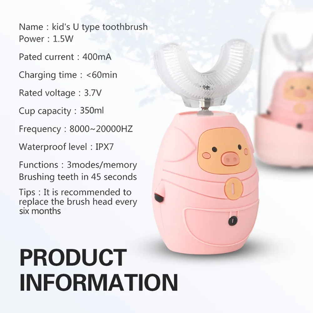 USB перезаряжаемая 360 звуковая электрическая зубная щетка для детей u-типа силиконовая УФ-сушка зубная щетка Милая картонная детская