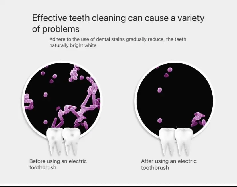 Из-за различных партий фабрики, логотип продукта иногда отличается от изображения продукта. Это не проблема качества продукции, но разница в обрабатывающей машине 1. Из-за различий между различными мониторами изображение может не отражать фактический цвет проекта. Мы гарантируем, что стиль такой же, как на картинке. 2. В связи с использованием разных методов измерения вручную возможны незначительные различия в размерах. Продукт Особенности: -IPX7 Водонепроницаемая стирка всего тела, предотвращает попадание капель воды внутрь фюзеляжа. -Пять режимов (очистка/полировка/белый/Gumcare/Sensive ), управление одной кнопкой. Удаляет до 7x больше налета по сравнению с ручной зубной щеткой -Зарядка 1 раз, чистка зубов в течение 15 дней -2 мин смарт-синхронизации, разделите рот на 4 области, каждая область в течение 30 секунд. 2 минуты конец чистки напоминание разработать привычку чистки, рекомендованную стоматологом (один предположил лучший период чистки) -32000 вибраций в минуту, налет и калькулятор негде скрывать