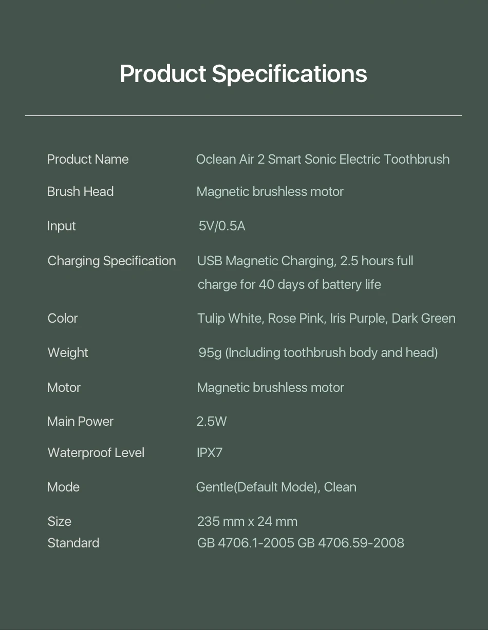 Умная звуковая электрическая зубная щетка Oclean Air 2