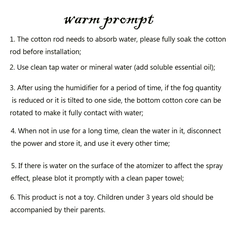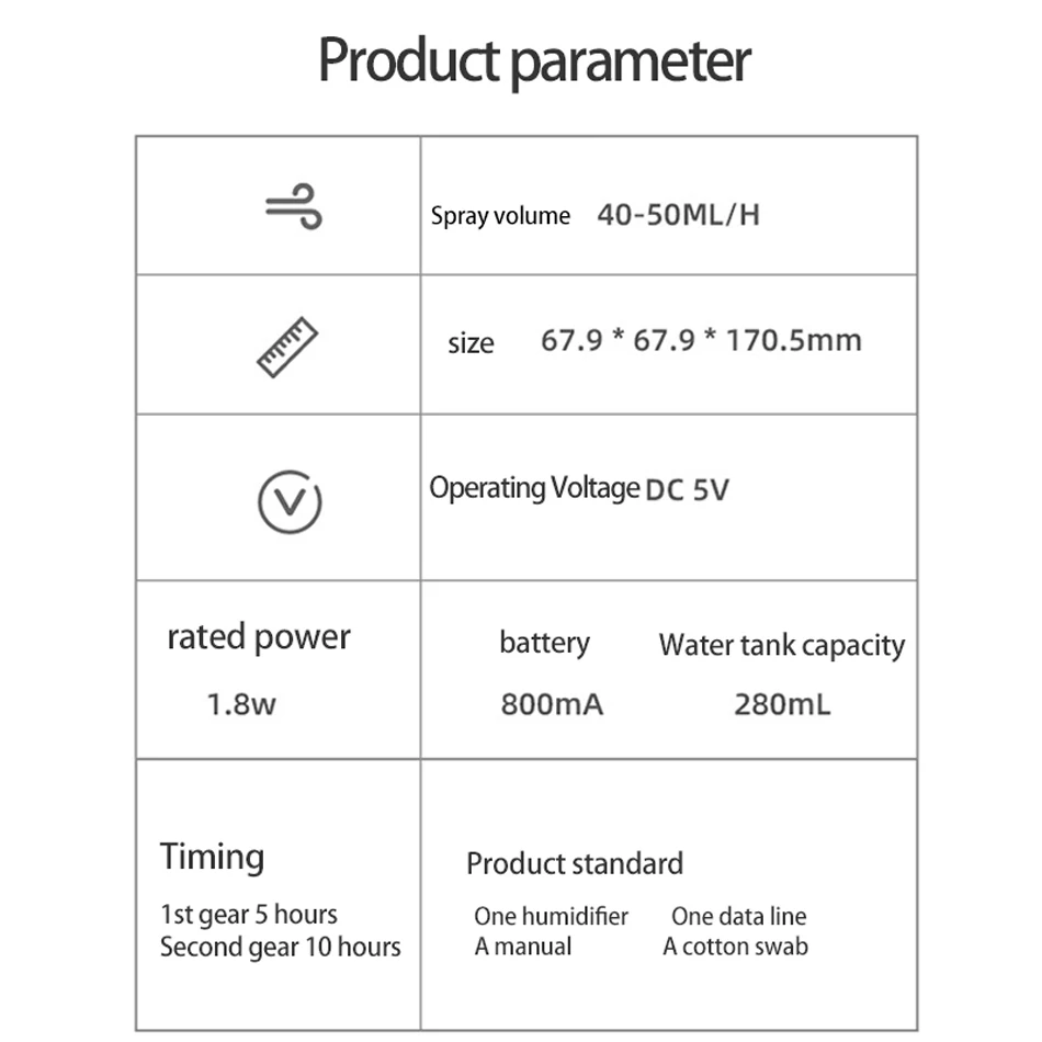 Стандарт продукта: один увлажнитель, одна линия передачи данных, одно руководство, одна ватная палочка