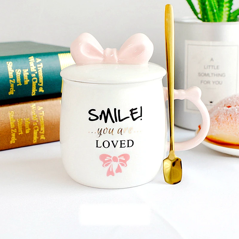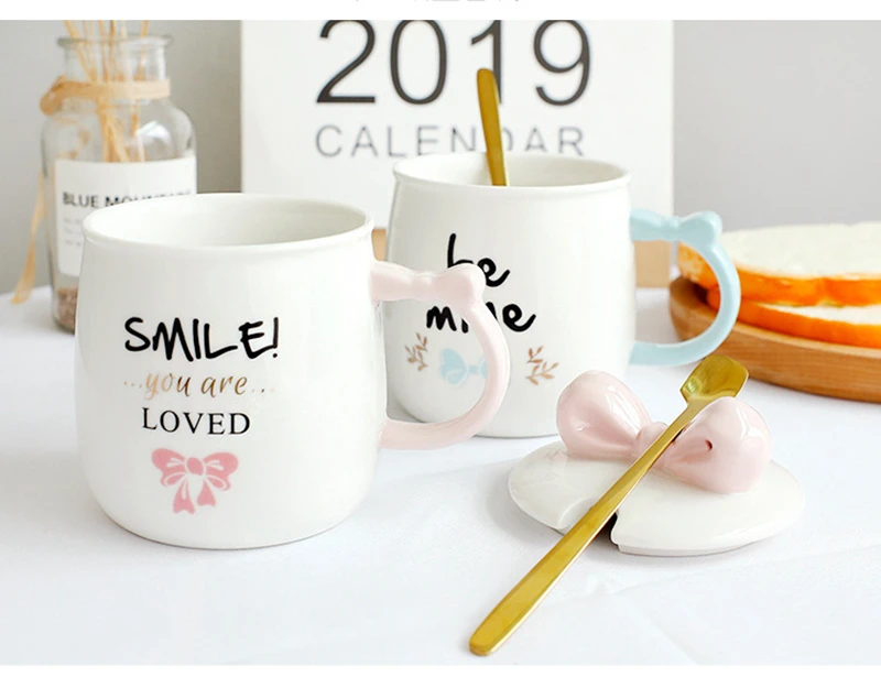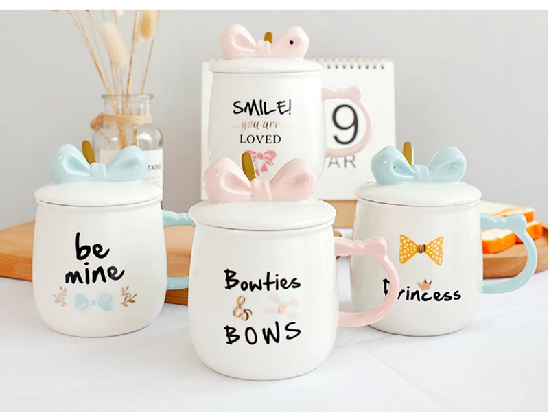 Керамическая кружка с розовым и синим бантом
