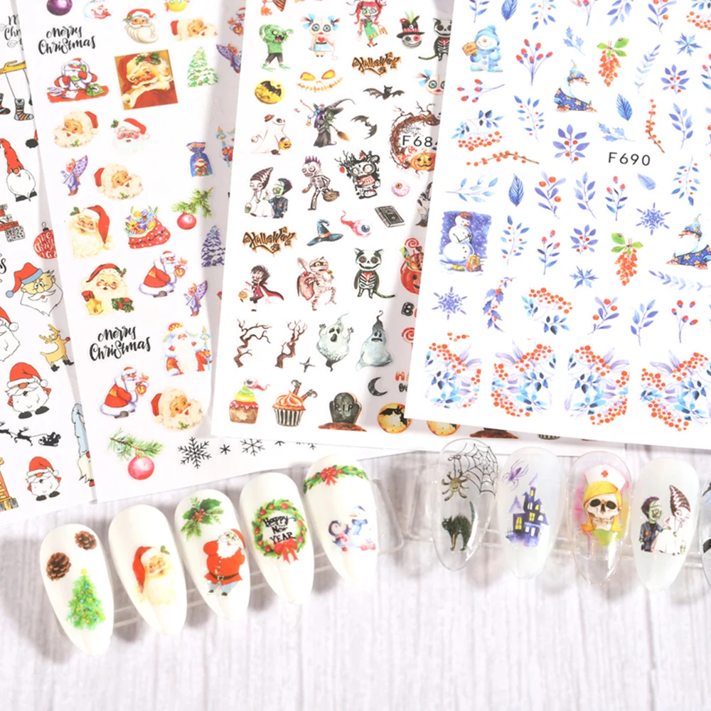 Наклейки для ногтей для маникюра, наклейки на Хэллоуин, самоклеящиеся переводные наклейки для ногтей «сделай сам», украшения для дизайна ногтей для женщин и детей