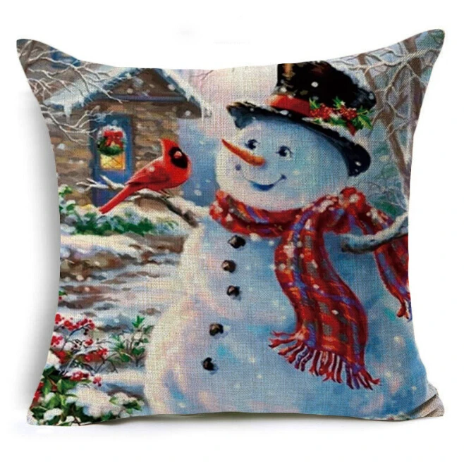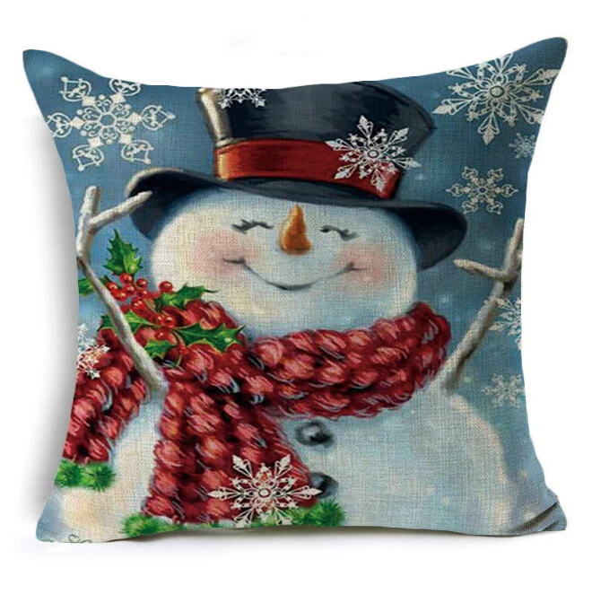 Рождественские наволочки 18x18 дюймов, винтажные декоративные льняные Квадратные наволочки снеговика Санта Клауса для дивана и дивана