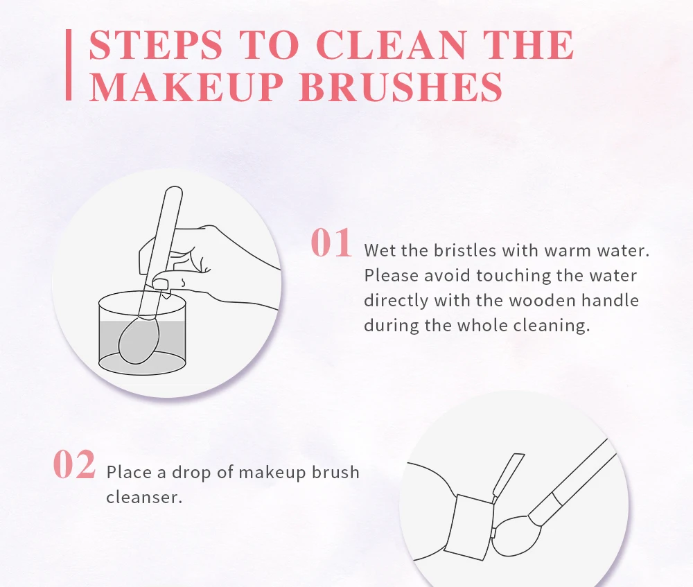 1. Щетка с чистящей водой (ниже 40 ℃) 2. При средней стирке не более 3/4 головки щетки. 3. Без фена, без воздействия солнца, сохраняет сухость и чистоту 4. Регулярное обслуживание, рекомендуется чистить один раз в неделю