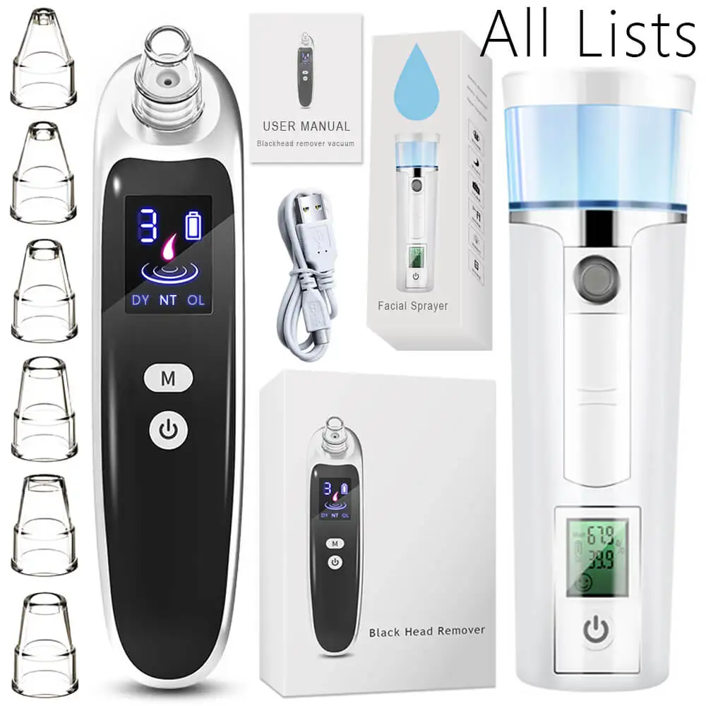 Посылка: 1 x вакуумный прибор для удаления черных точек 5 датчиков отверстий Силиконовое кольцо-2 шт. 5 губчатых фильтров 1 x USB-кабель для зарядки 1 х упаковочная коробка