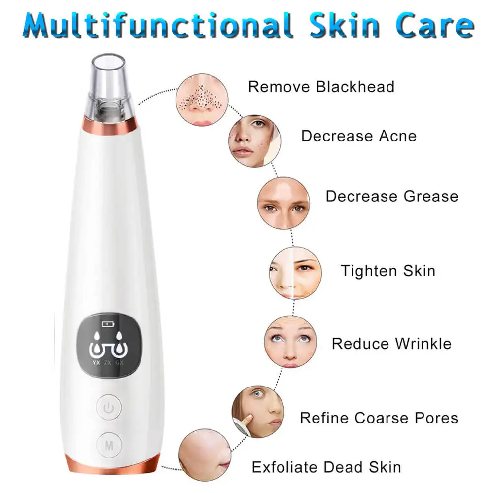 Функции: 1. Удаление черных точек, Глубокая очистка лица, вакуумное удаление черных точек 2. Лечение акне, прыщей 3. Лечение обвисшей и морщин, омоложение кожи 4. Уход за пятнами и тусклой кожей, уменьшение гиперпигментации кожи Посылка: 1 x вакуумный прибор для удаления черных точек 6 датчиков отверстий 1 x Силиконовое кольцо 5 губчатых фильтров 1 x USB-провод для зарядки 1 x Руководство пользователя 1 х упаковочная коробка