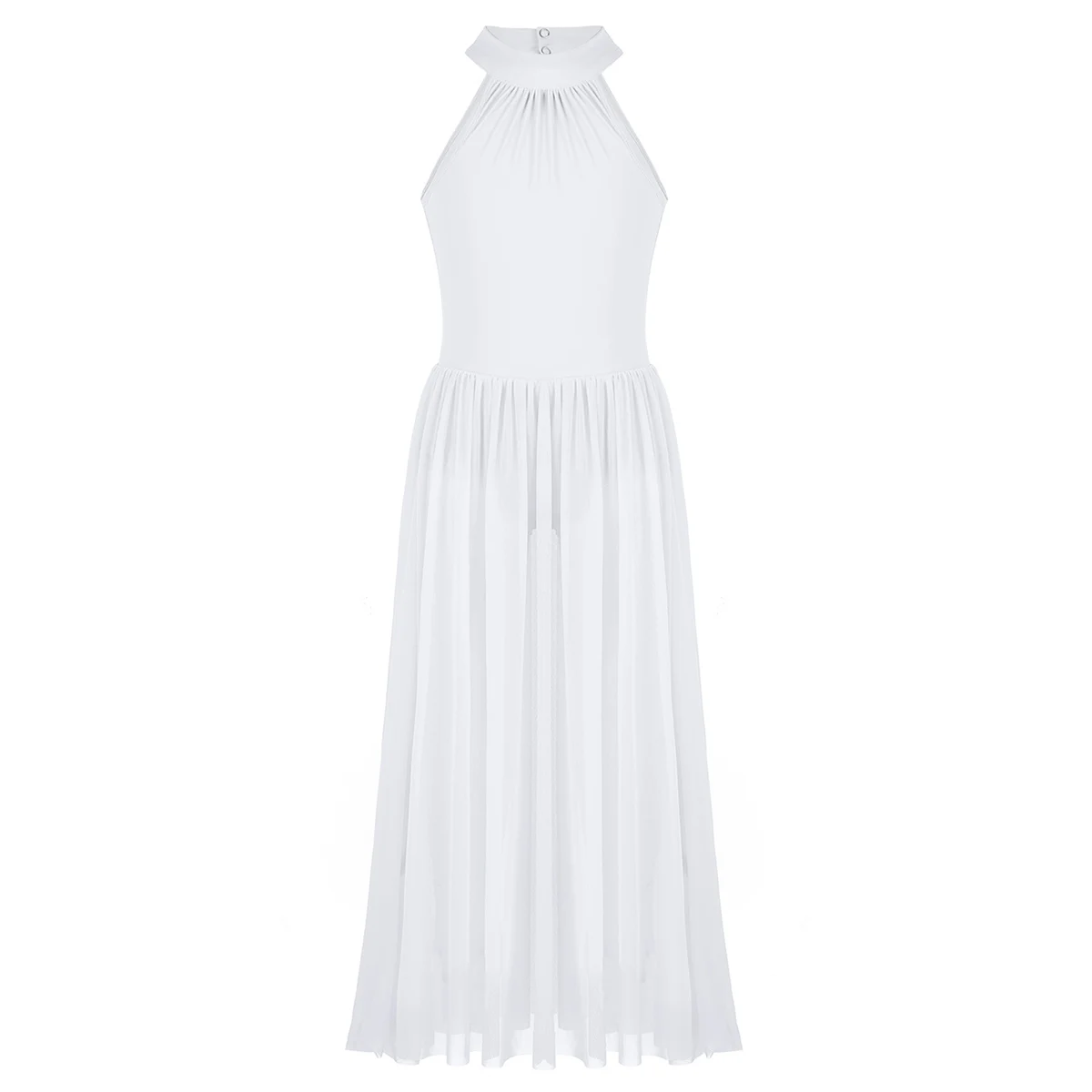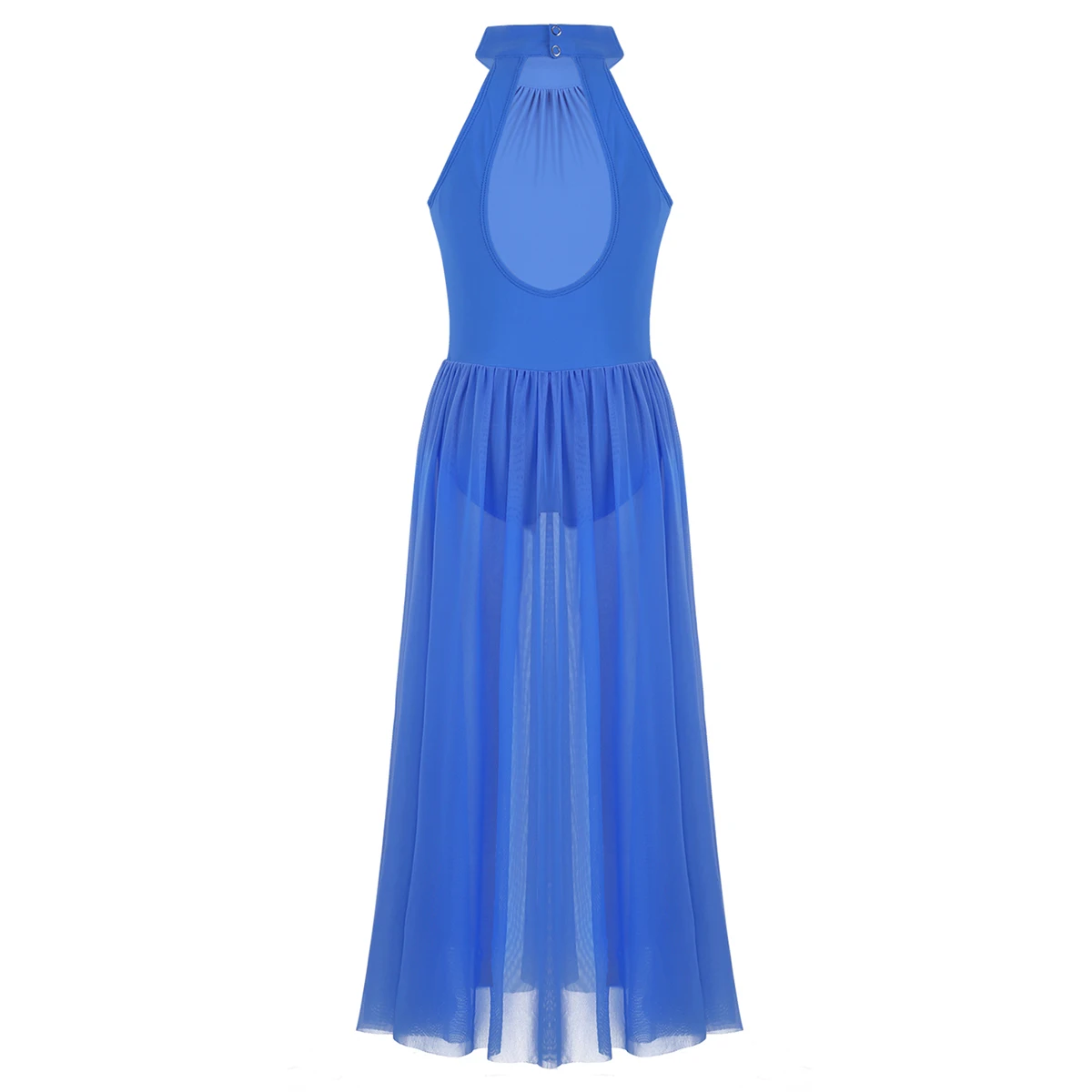 1 слой тянущегося сетчатого Макси-платья прикреплен вокруг талии, боковой Сплит-дизайн. Красивая танцевальная одежда для вашей девочки.