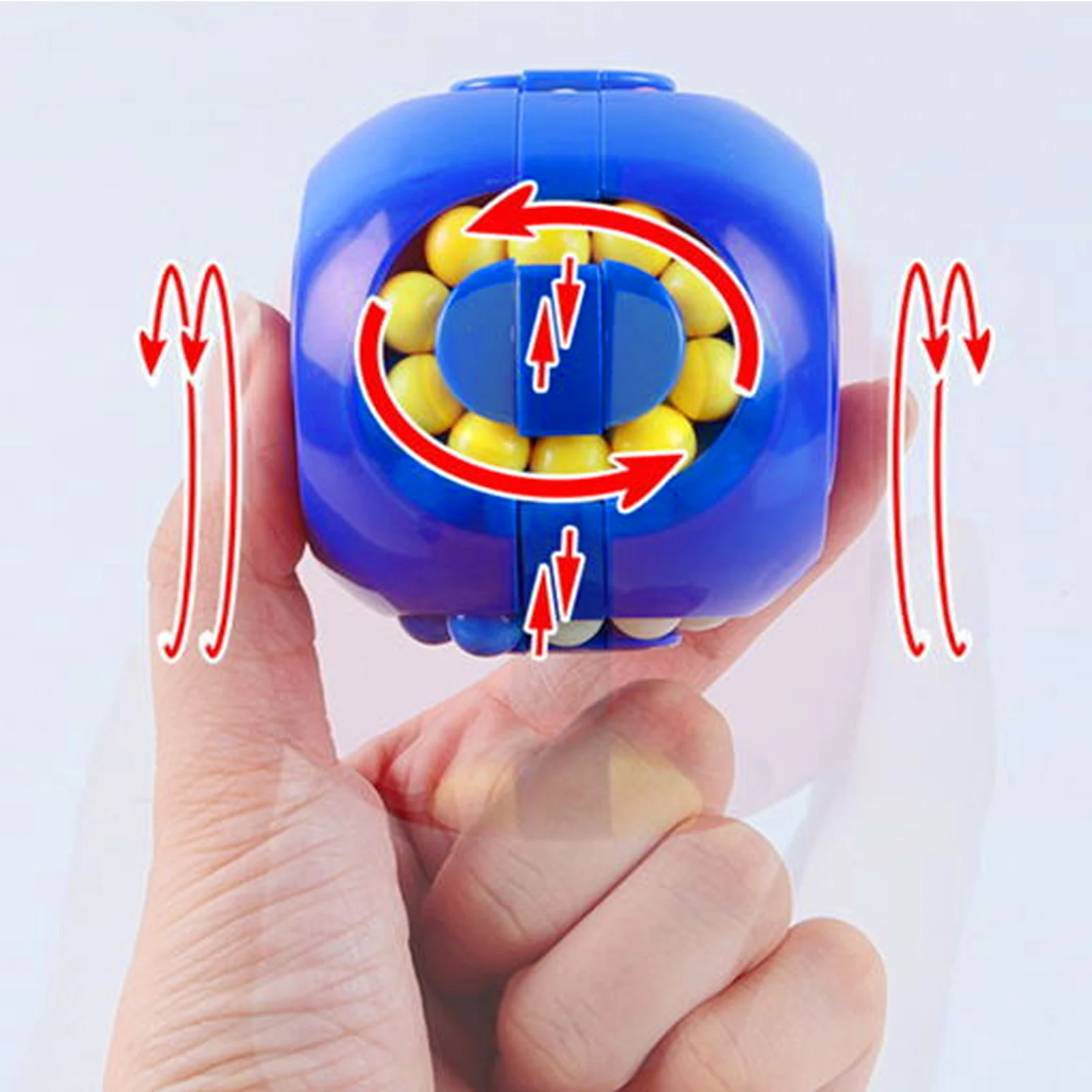 Легко играть:После того, как куб сломался, нажмите маленький шарик в o-образной паз и нажмите бусины разных цветов на среднюю горизонтальную ось.