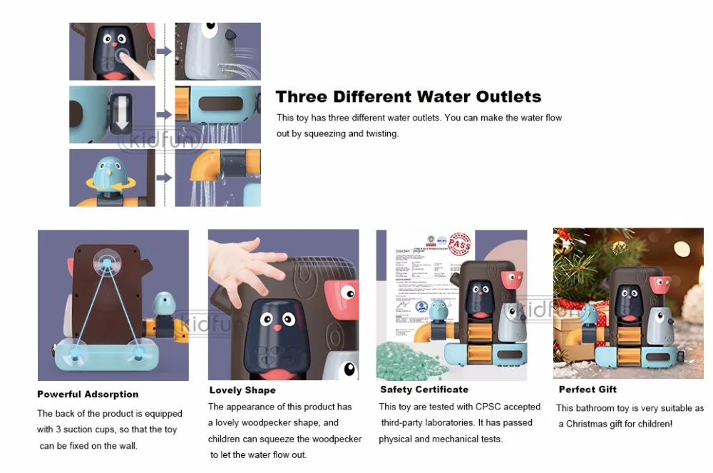 ✔Теплая интерактивная игрушка для ванной: налейте воду в голову дятела, затем нажмите и удерживайте кнопку и наблюдайте за распылением воды изнутри. Примечание: вам нужно добавить в него не менее 3 стаканов воды (соответствующий стакан), и вода не начнет течь до тех пор, пока резервуар для воды не будет заполнен водой. Дятел должен нажать несколько раз, прежде чем он сползает.