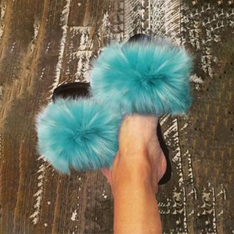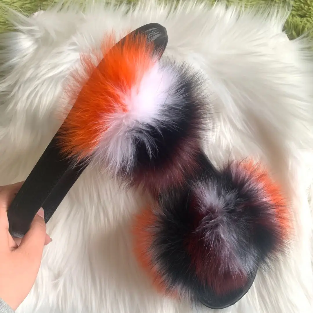 Летняя женская обувь; Меховые тапочки; Удобная обувь на плоской подошве; Шлепанцы с натуральным лисьим мехом; Экстра-пушистый; Элегантные женские роскошные сандалии