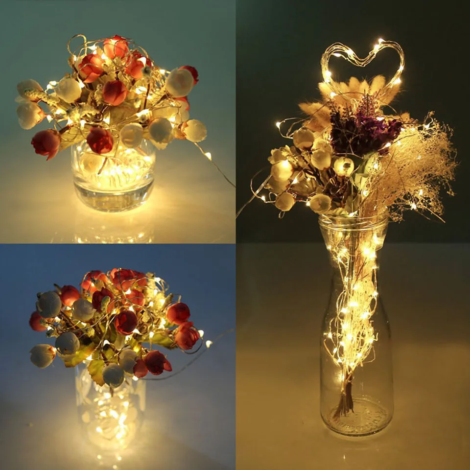 10 м, 5 м, 2 м, USB/питание от аккумулятора, светодиодные гирлянды, медный провод, бутылка, сказочные огни, Рождественская гирлянда, украшение для свадебной вечеринки