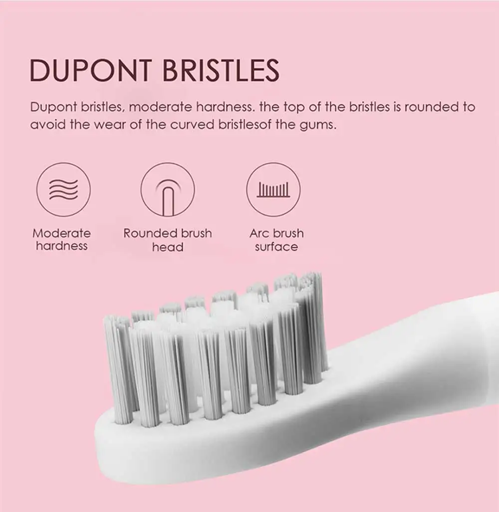 ● Принимает американские щетинки DuPont, средней твердости, а верх щетины округлый и гладкий, чтобы предотвратить истирание десен.