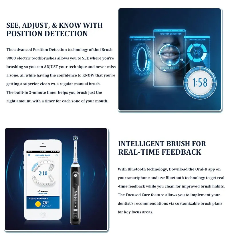 Oral B iBrush 9000 электрическая зубная щетка глубокая оральная Чистка интеллектуальная технология Bluetooth 3D звуковая зубная щетка 6 режимов перезаряжаемая