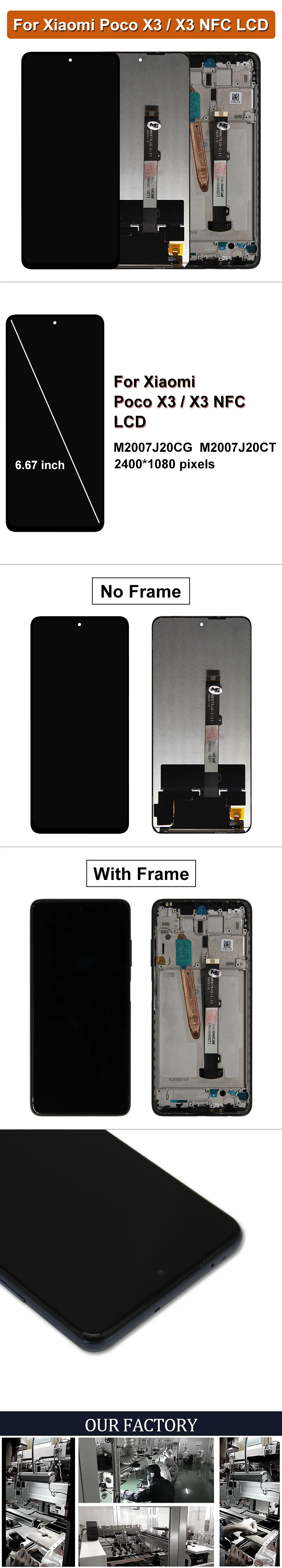 1. Оригинальный качественный ЖК-экран в сборе дляЖК-дисплей Xiaomi POCO X3 / X3 NFC