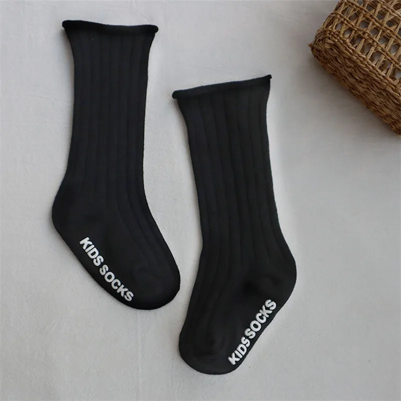 Мягкие дышащие носки для маленьких мальчиков весенне-осенние однотонные носки без пятки в рубчик для девочек, Хлопковые гольфы ярких цветов для детей, meias