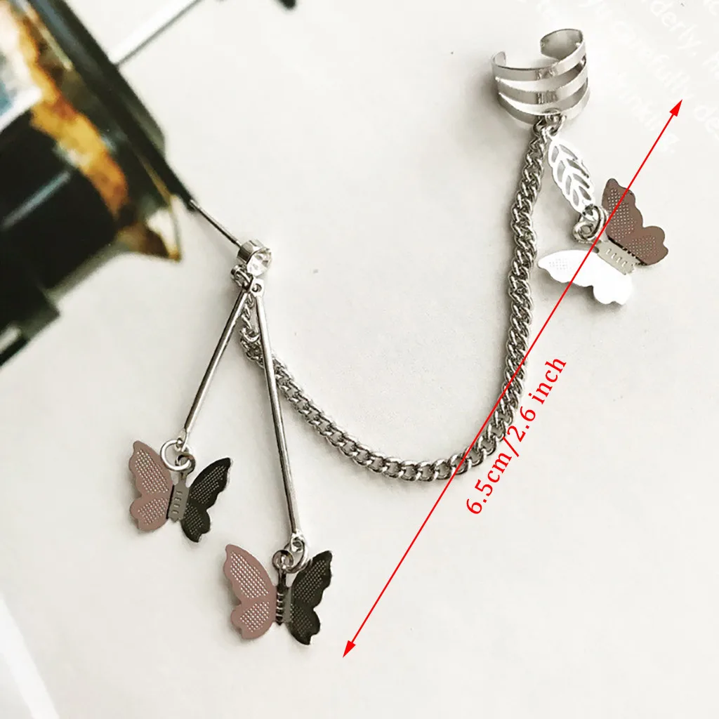 Двойной пирсинг уха кости Клип Изысканный цепи цельный одной бабочки серьги
