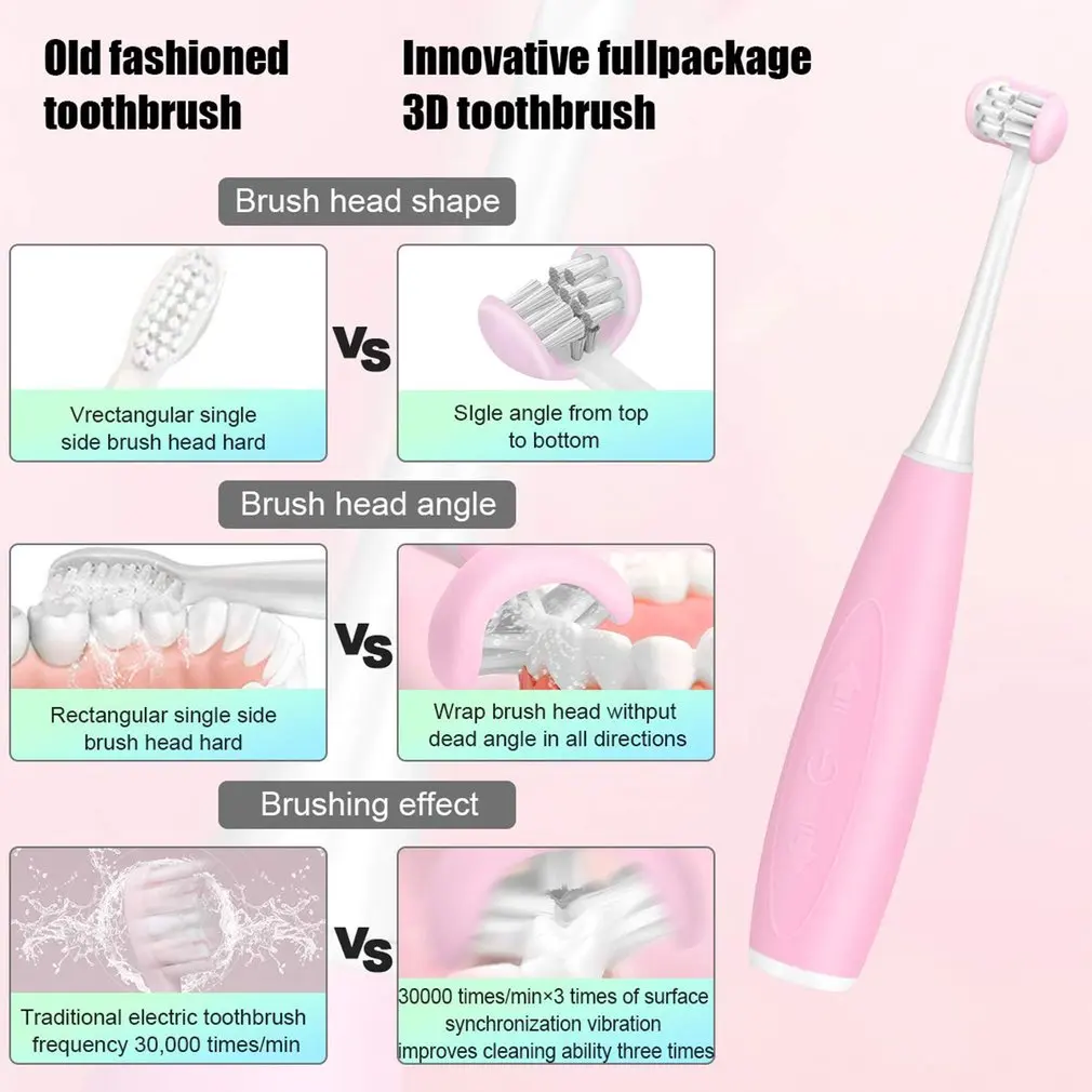 Особенности: 1. Водонепроницаемость IPX7: моющаяся, многоразовая, может использоваться в ваннах и душах, достаточно мягкая, чтобы использоваться в брекетах, брекетах, имплантатах и коронах. 2. 3 режима очистки: 3 режима: чувствительный, чистый, нежный, подходит для детей с различными зубами и деснами. Ультразвуковая очистка, 30000 раз/мин, Эффективная очистка. 3. Полностью завернутая 3D зубная щетка помогает вам достичь глубокой очистки. Используйте щетинки с Круглым Верхом, чтобы предотвратить кровотечение из десен. Он больше подходит для детских зубов и десен. Описание: Забавная 2-минутный таймер песочных часов предлагает детям чистить достаточно долго для того, чтобы тщательно чистки зубов и десен. Характеристики: Цвет головки зубной щетки: синий, желтый (по желанию) Цвет зубной щетки: розовый, небесно-голубой (по желанию) Скорость: 30000 раз/мин Интервал зарядки: 6 недель Время зарядки: 4-6 часов Посылка включает в себя: 1 * головка зубной щетки Или 1 * зубная щетка