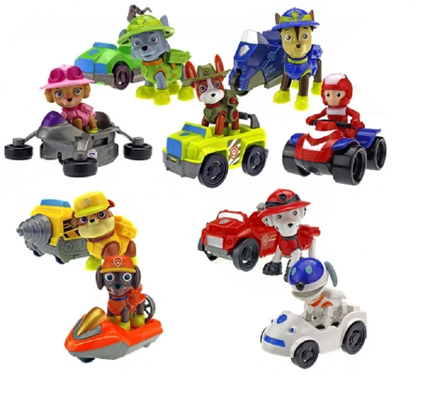 Транспорт оборудован инерционным механизм с заводом. Каждого члена команды можно использовать как в машине, так и отдельно. Все члены команды имеют подвижные конечности и голову. Фигурки хорошо входят в свои машинки. Команда состоит из 9 персонажей мультсериала Щенячий Патруль.