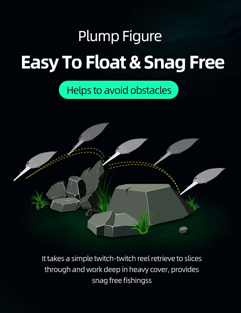 Особенности: натуральный профиль, реалистичный рисунок с накидывающимися красками (текстура молнии, бронзовая технология и технология изменения цвета)-Внешние Вытравленные жабры, 3D голографические глаза, вместе с неровным боковым действием привлекают внимание хищников, убеждают рыбу ударить