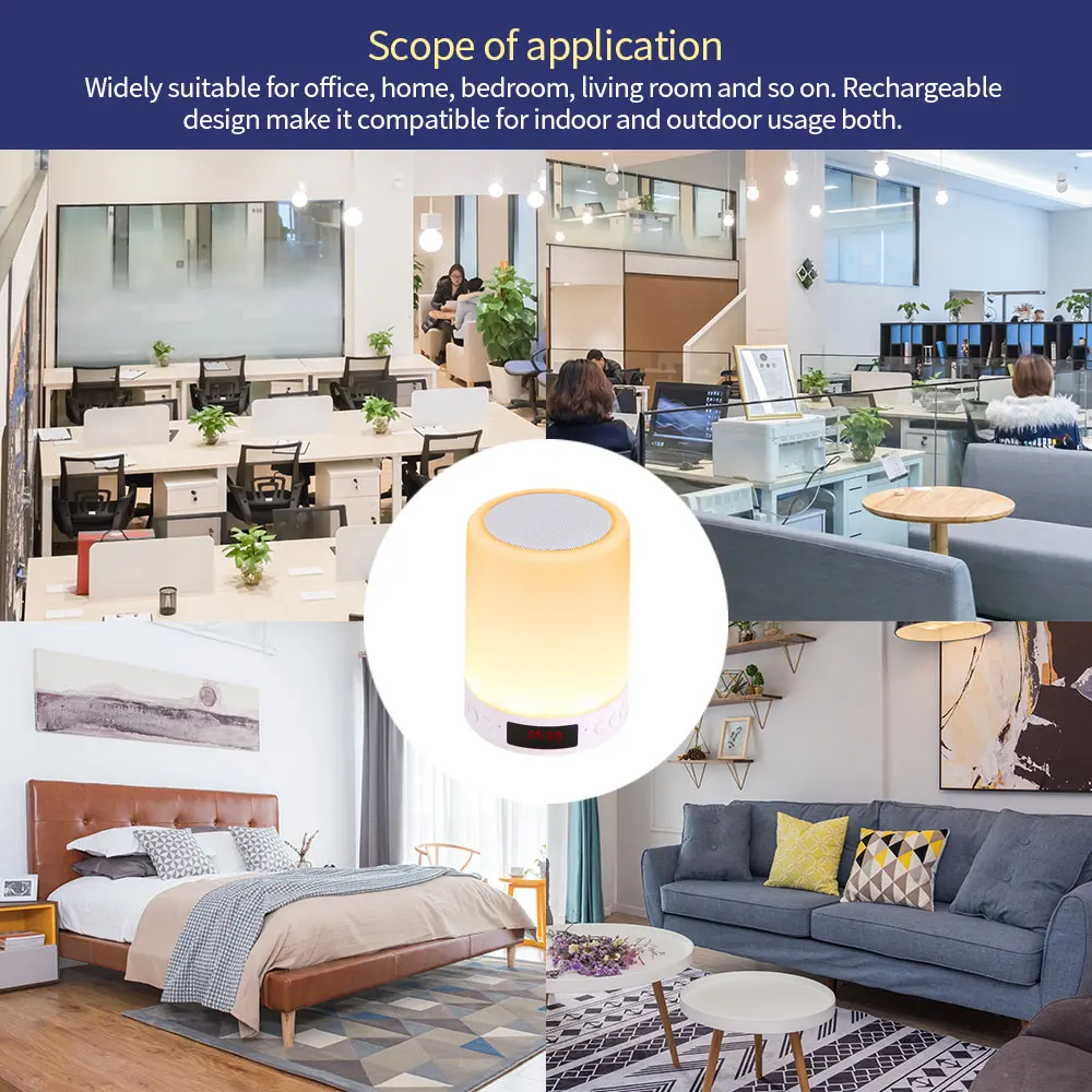 Динамик с несколькими функциями широко подходит для офиса, дома, спальни, гостиной и так далее. Перезаряжаемый дизайн делает его совместимым для использования в помещении и на открытом воздухе.