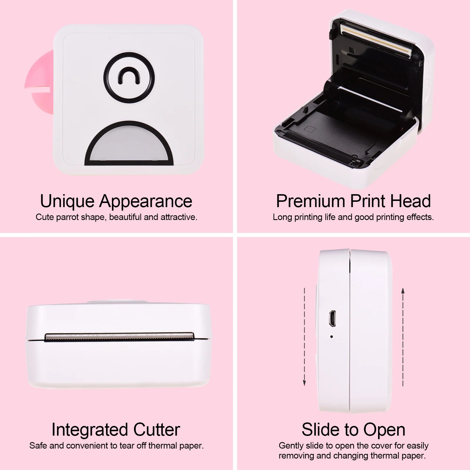 Портативный принтер:Карманный термопринтер, подключенный BT, 300 точек/дюйм высокой четкости печати, 58 мм ширина бумаги, нет проводов, печать в любое время и в любом месте.