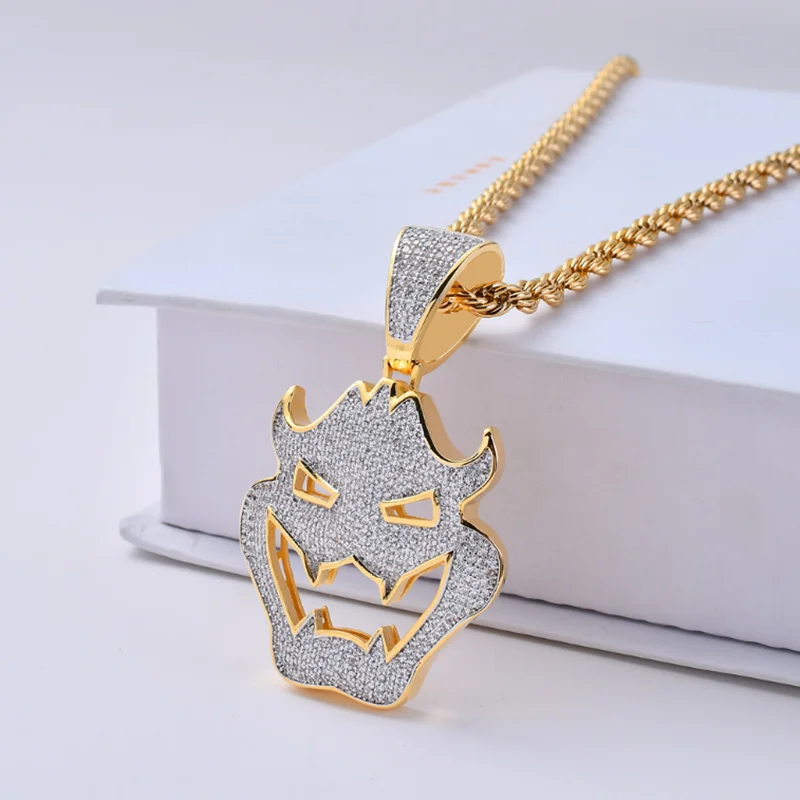 Хип-хоп AAA кубический циркон индивидуальное ожерелье с подвеской-маской рок цепь звено для мужчин ювелирные изделия