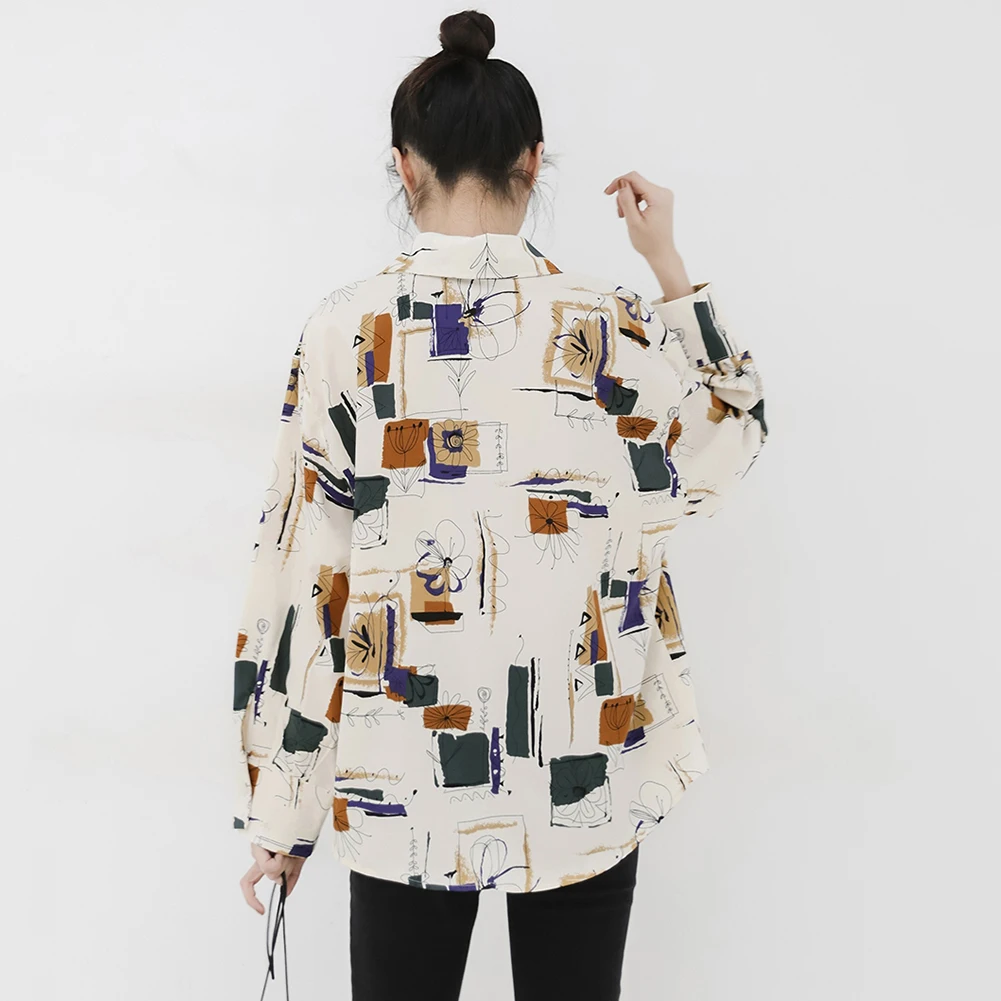 Модная женская летняя блузка, шифоновая винтажная Цветочная блузка, однобортная рубашка с длинным рукавом, женские топы, хлопковая рубашка