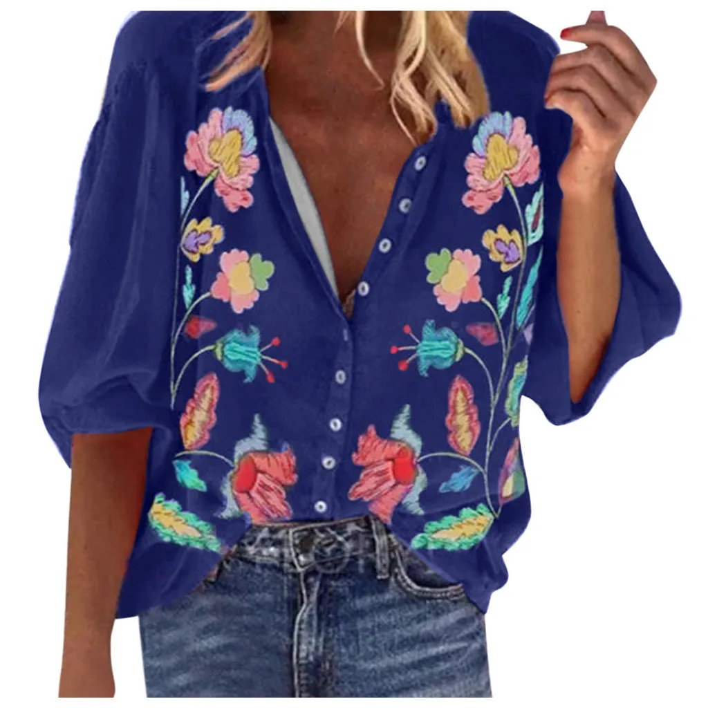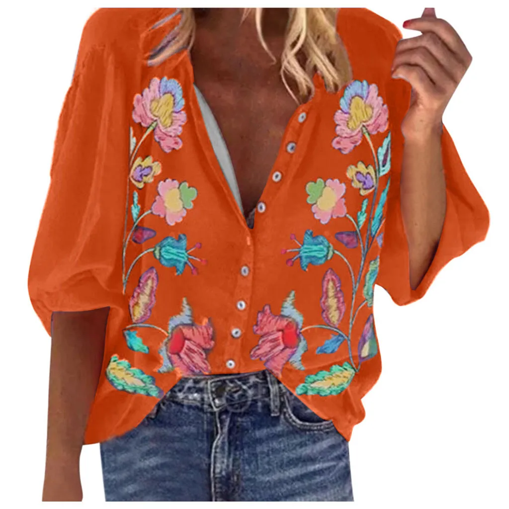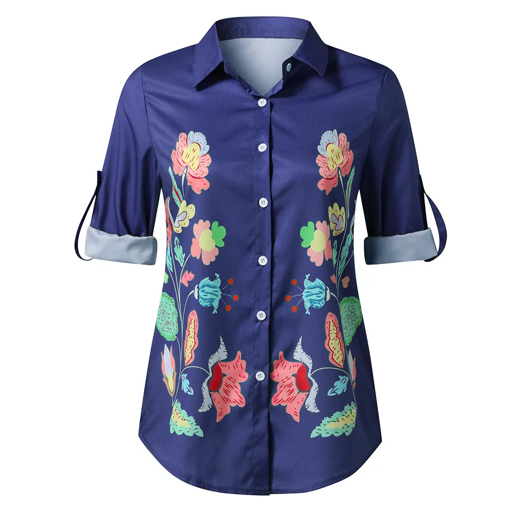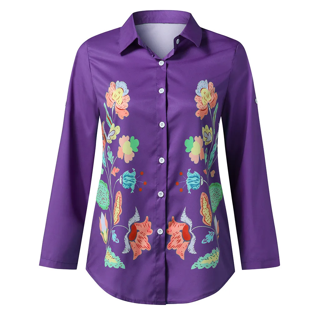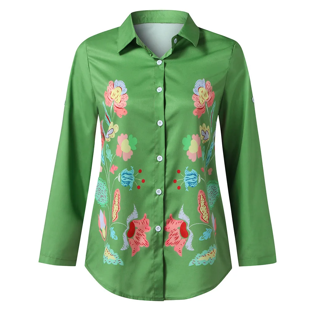 Женские модные повседневные рубашки с длинными рукавами и пуговицами, свободные летние рубашки с принтом, топы