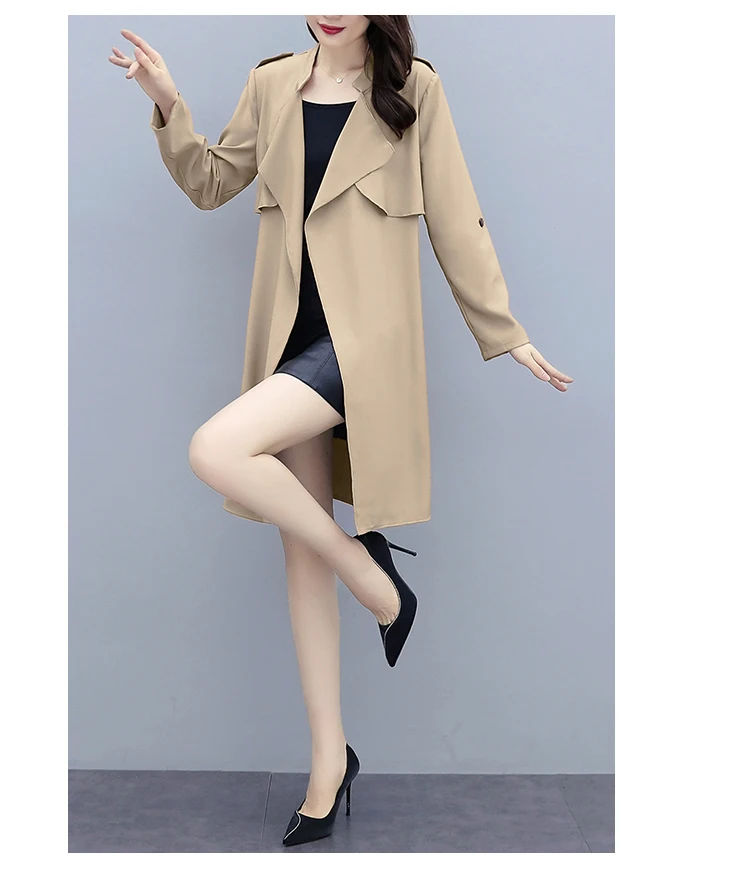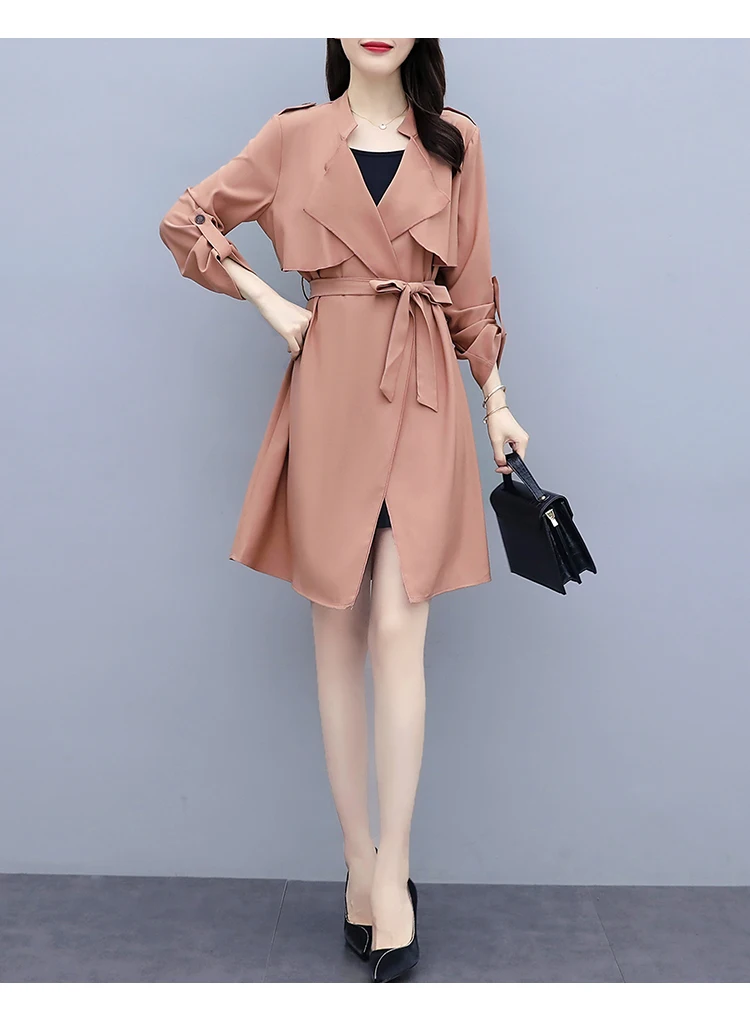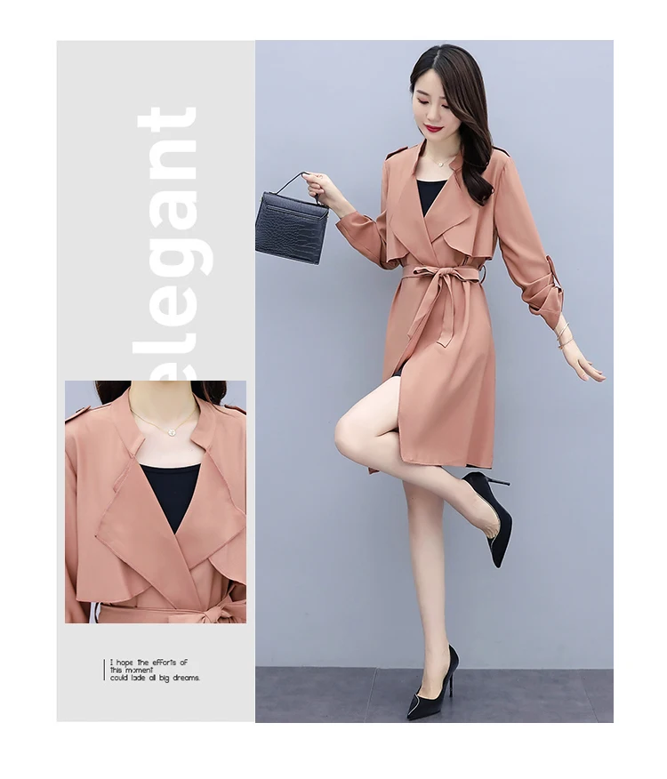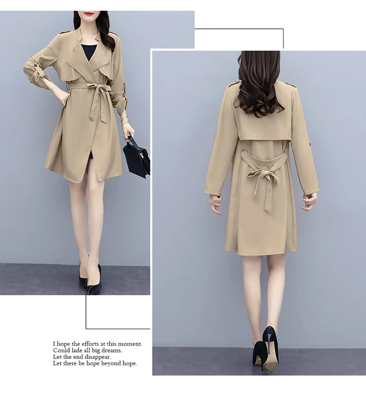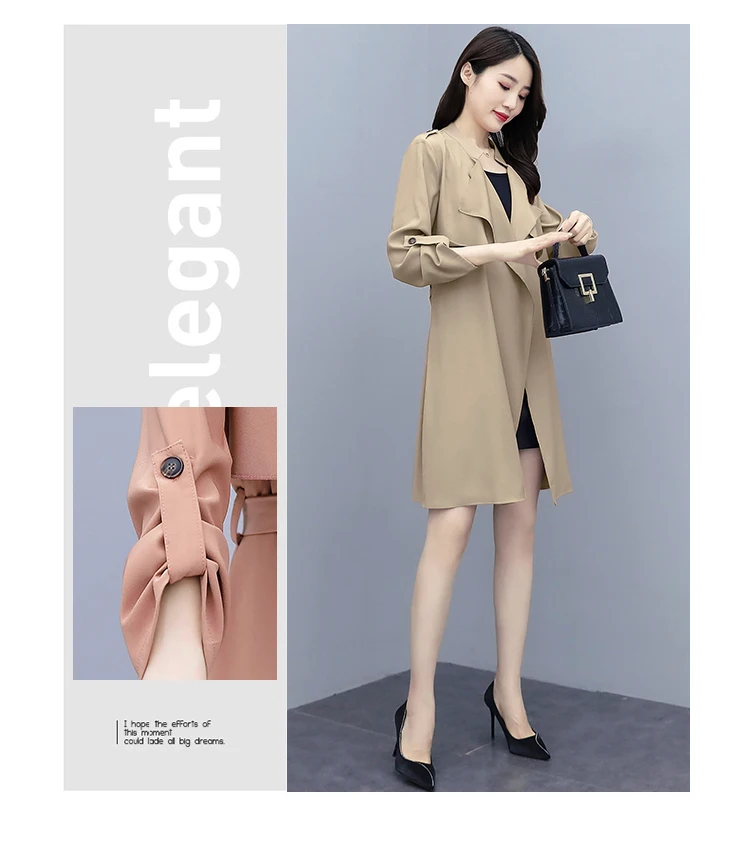 Весенне-осенний Тренч, тонкий Женский Тренч, пальто для женщин, ветровки размера плюс, корейский стиль, темпераментная куртка с длинным рукавом fc970