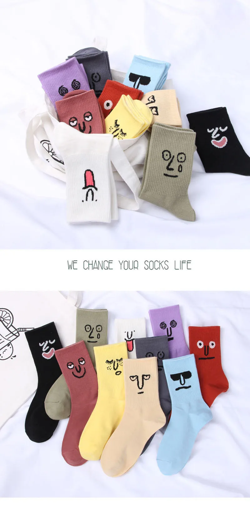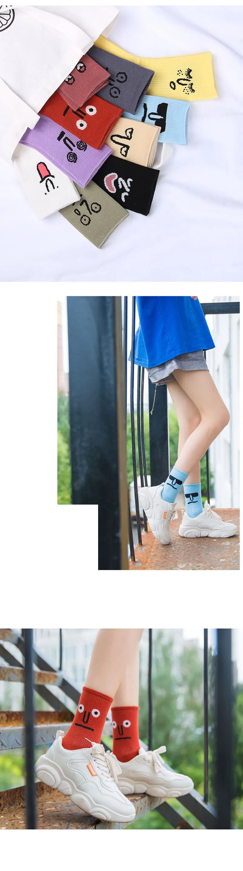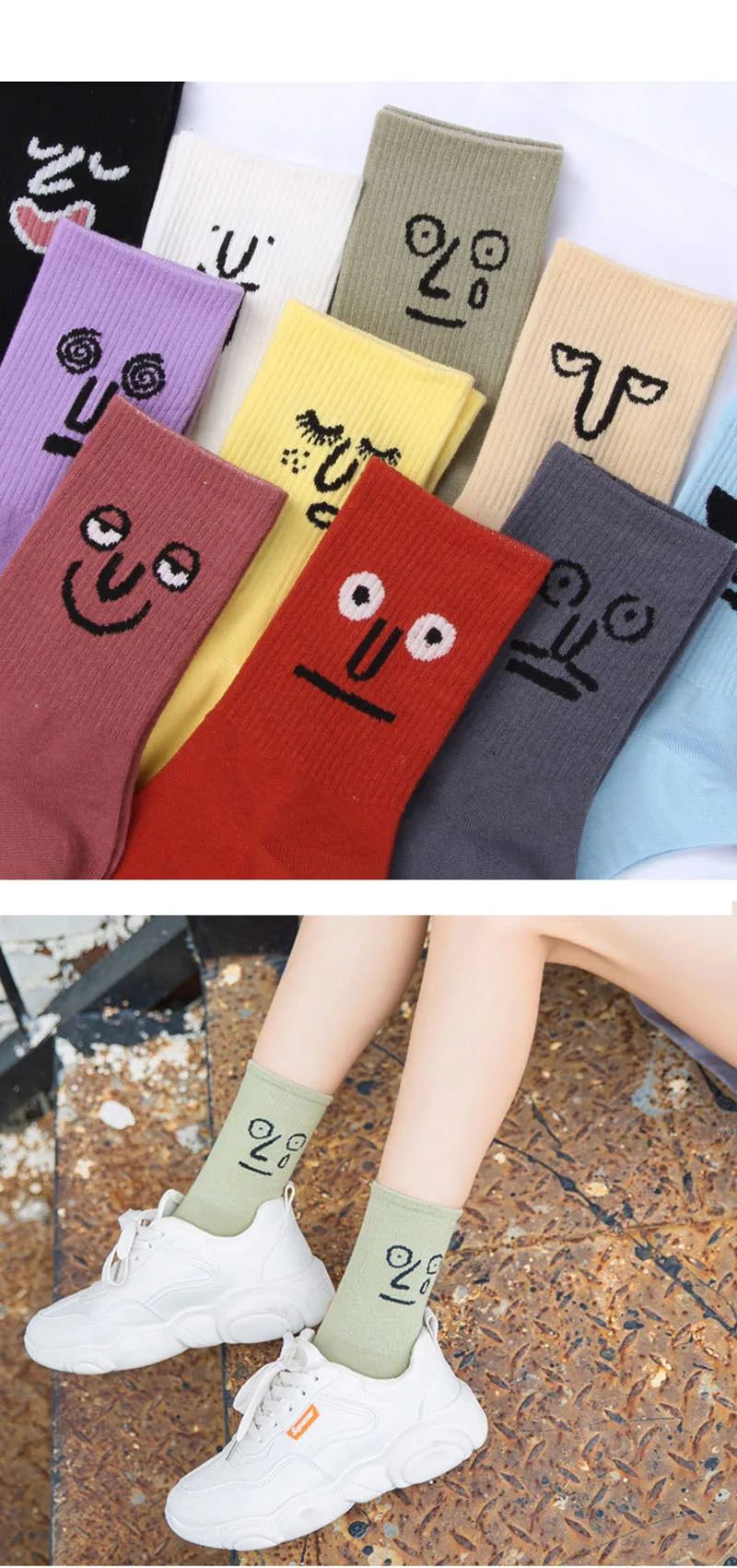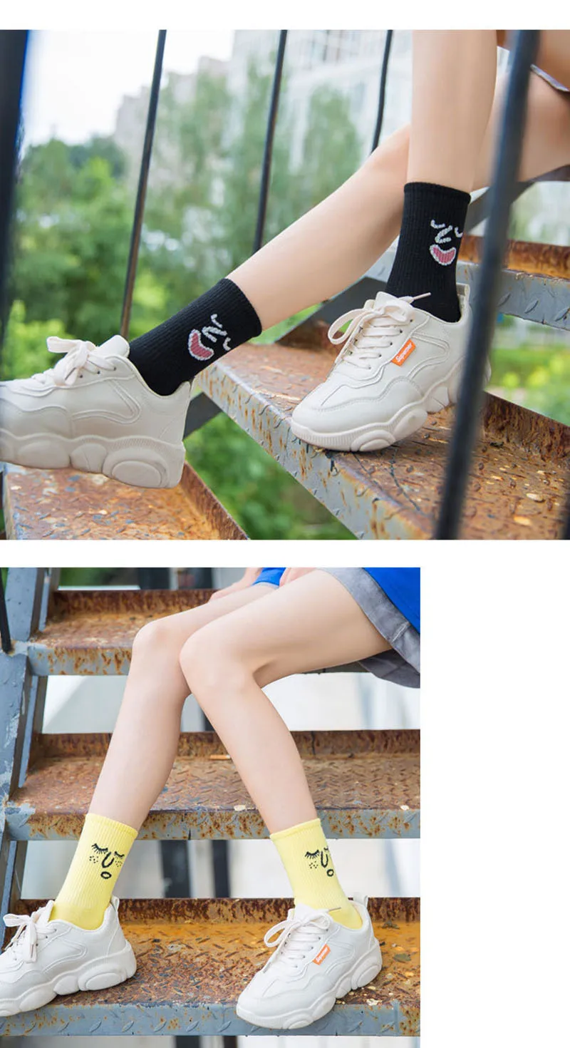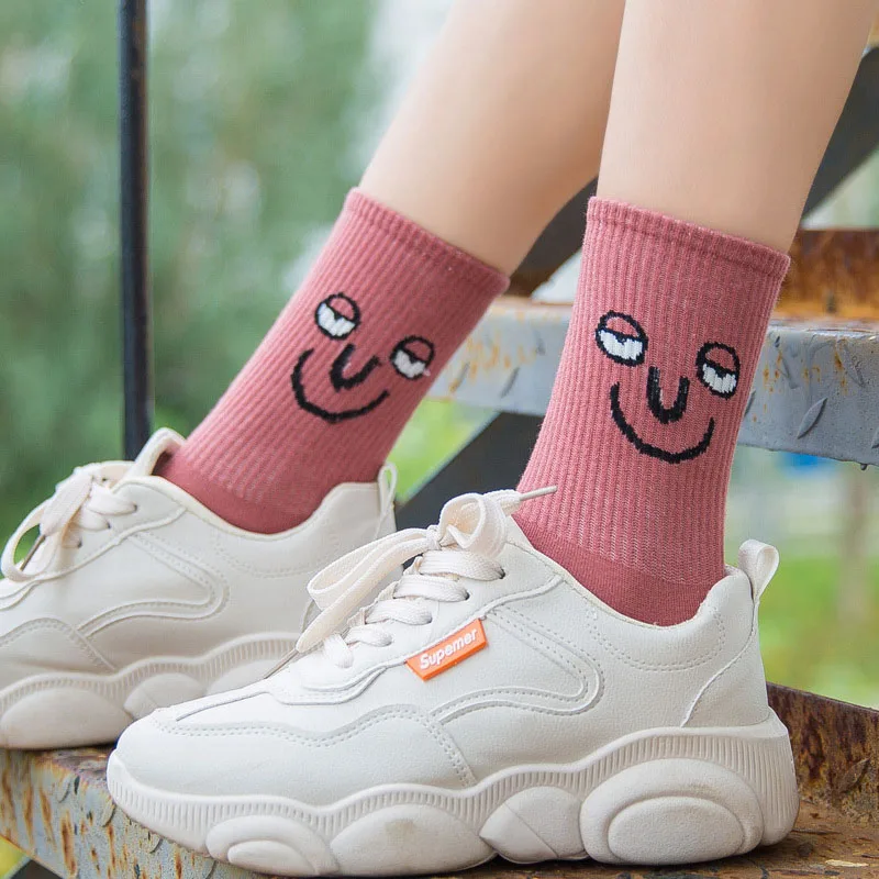 Женские носки в стиле Харадзюку CINESSD со смайликом, милые забавные носки с героями мультфильмов, повседневные носки для девушек и девушек, женское счастье кавай, носки унисекс, Средние теплые носки
