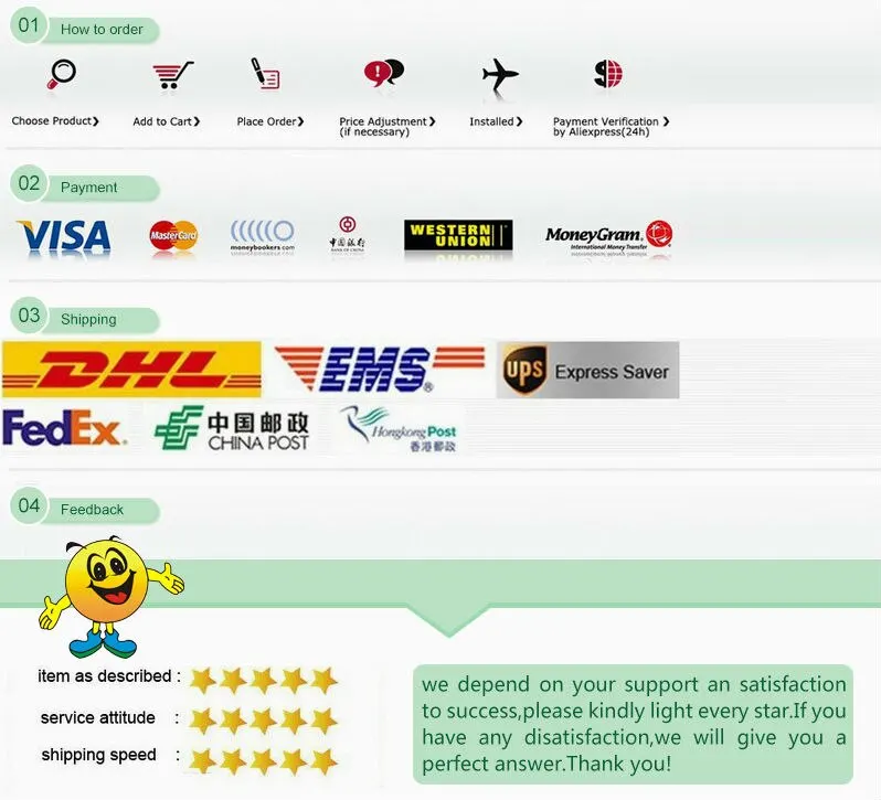 1. Для улучшения качества наших услуг. Если у вас есть какие-либо проблемы с полученным товаром, не открывайте спор напрямую, не подтверждайте товары напрямую, пожалуйста, сначала свяжитесь с нами. Если вы открываетеСпор, aliexpress займет очень много времени, чтобы решить эту проблему и тратить Ваше ценное время. Поэтому, пожалуйста, свяжитесь с нами, мы дадим вам удовлетворенный ответ немедленно.