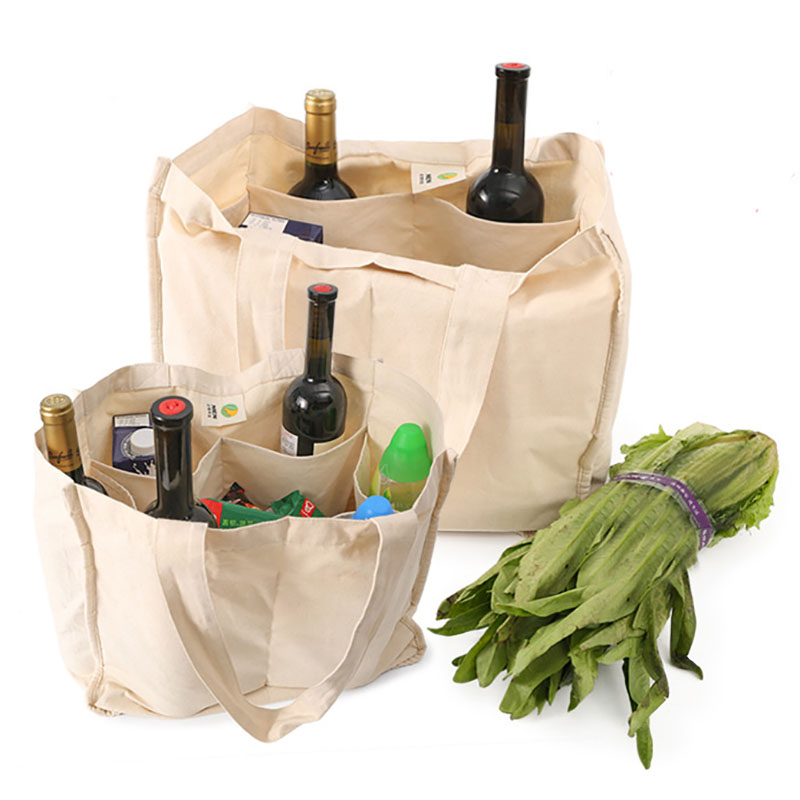Холщовые продуктовые сумки для покупок с 6 внутренними рукавами бутылок