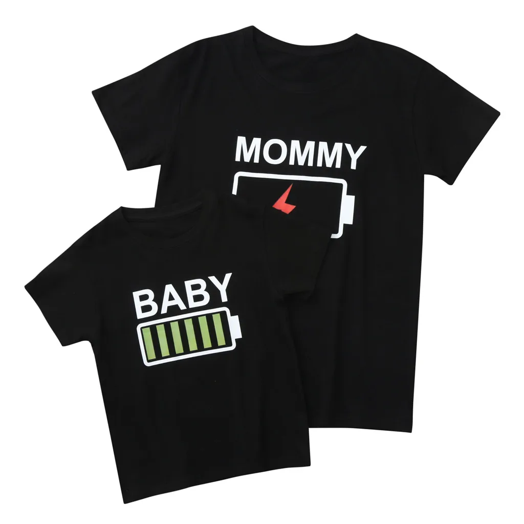 Детская футболка с короткими рукавами и буквенным принтом; Топы; Одинаковая семейная одежда