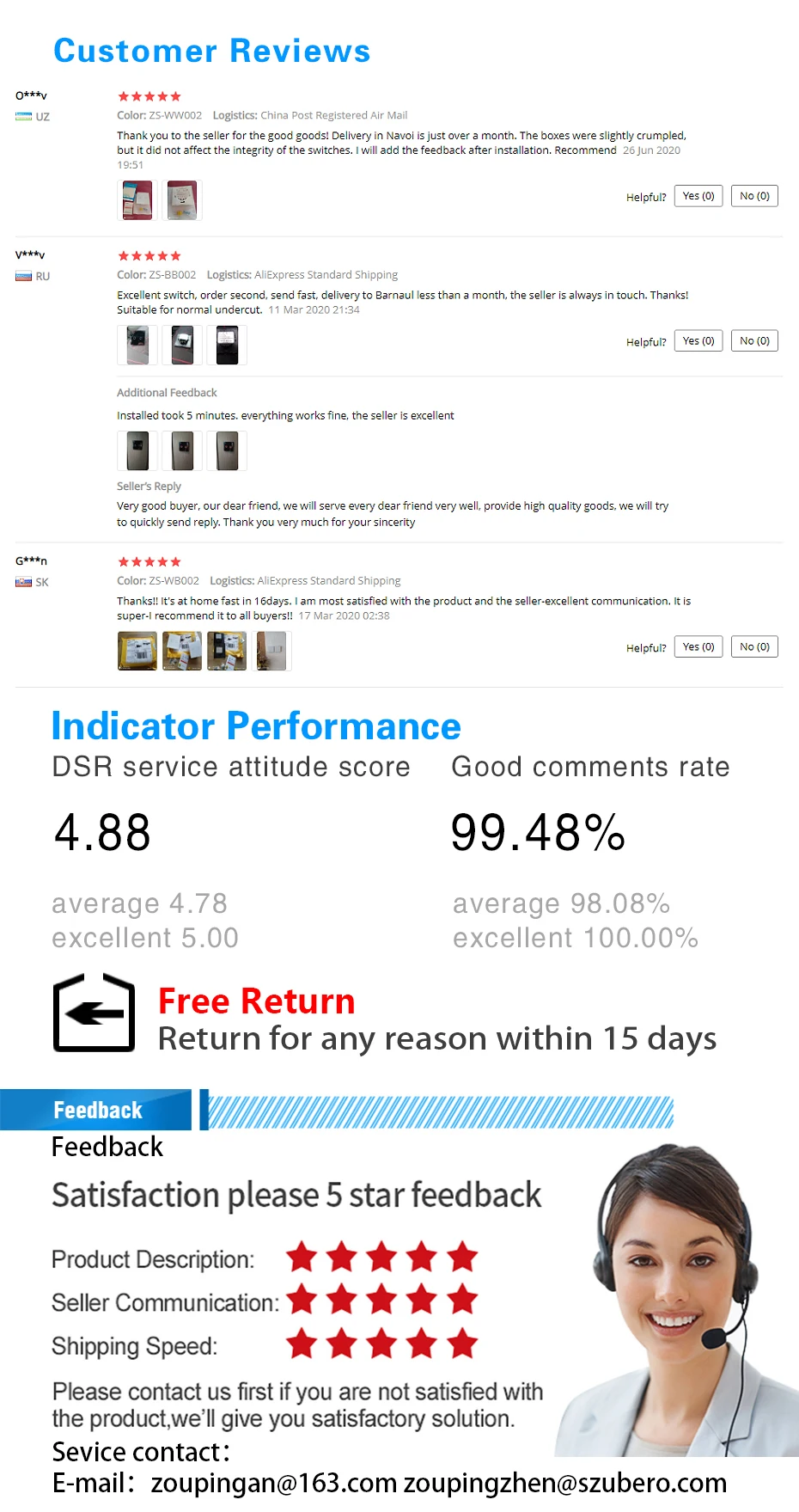 Любые отзывы от вас будут очень признательны. Если вы удовлетворены нашим обслуживанием или продуктами, пожалуйста, дайте нам 5 звезд. -Если у вас есть какие-либо вопросы, пожалуйста, также свяжитесь с нами, и мы предложим вам помощь раньше. Мы несем ответственность за обеспечение качества.