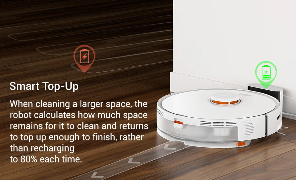 Адаптивные алгоритмы вычисляют наиболее эффективный маршрут очистки для каждой комнаты на основе формы и местоположения препятствий. Таким образом, очистка до 15% быстрее.