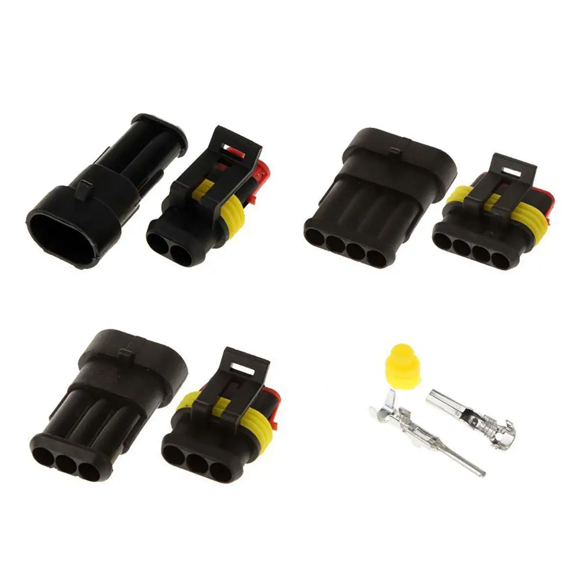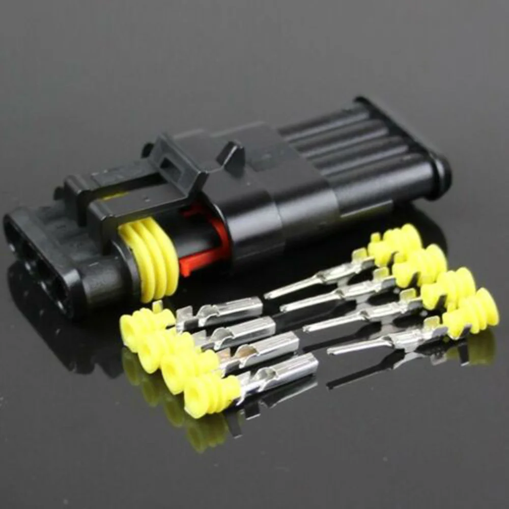 5 комплектов из 4 контактных разъемов включает в себя: 5x штекерные корпуса + 5x гнездовые корпуса + 20x штырьки + 20x гнездовые контакты + 40x силиконовые водонепроницаемые вилки