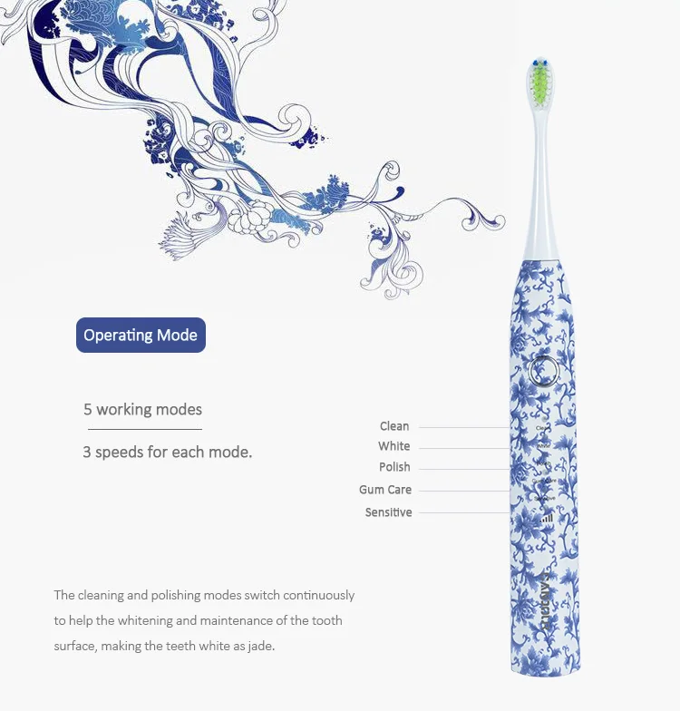 You need a different electric toothbrush A blue and white porcelain style electric toothbrush from China It not only has a strong power, but also has a unique appearance.