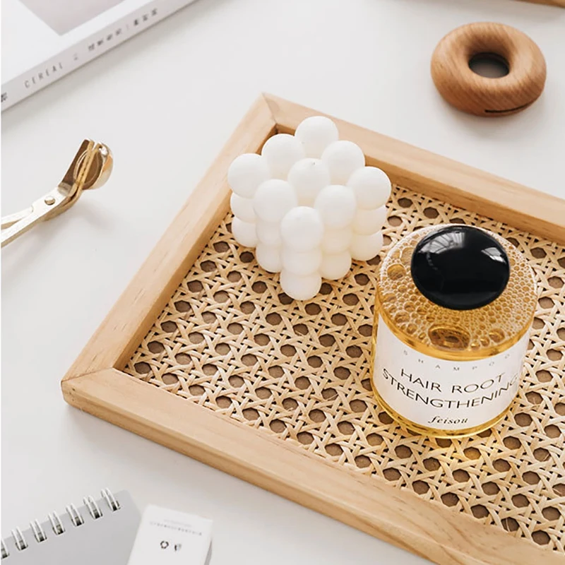 Домашний скандинавский плетеный поднос из ротанга, деревянный поднос ручной работы Ins Wind, прямоугольный геометрический орнамент, поднос для хранения ключей