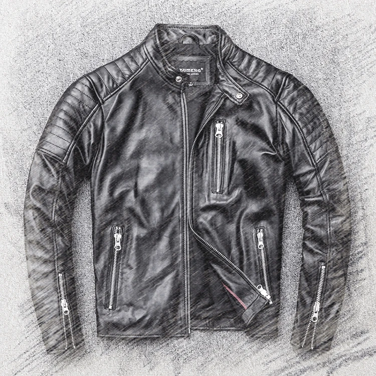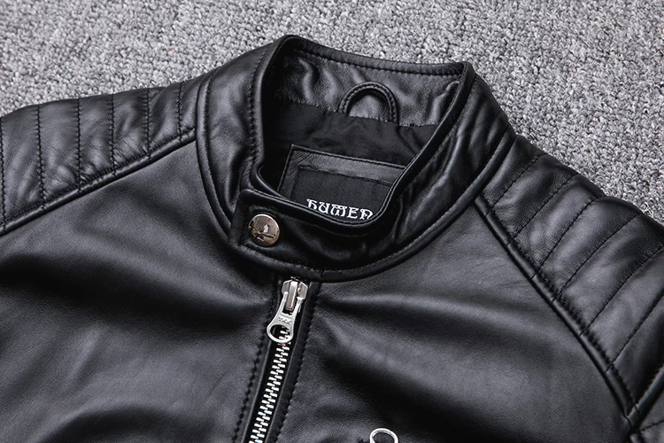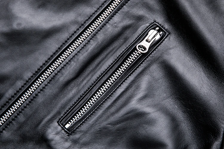 Сохраняя детали мотоциклетной куртки с типом изысканности, создав ее из черной овечьей кожи, которая достаточно светильник для обычной носки, комфорта и подвижности. Байкерская куртка из овечьей кожи прочная, теплая. Закажите этот мужской черный кожаный жакет онлайн сегодня!