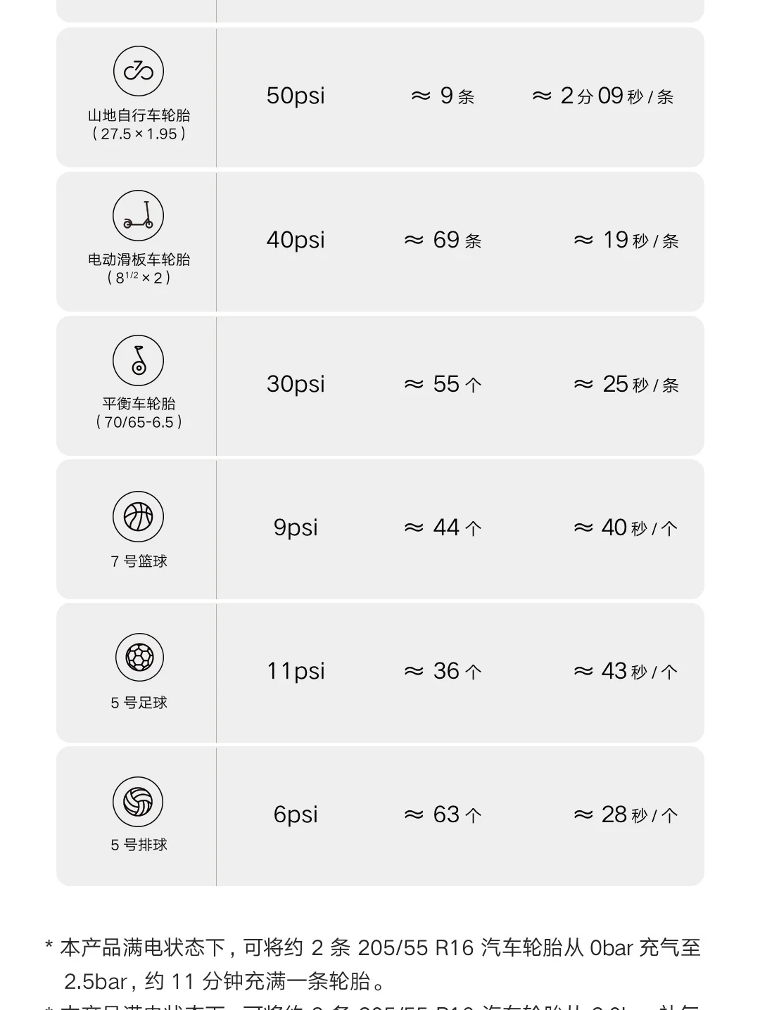 Bicycle(45psi) | Motorcycle(2.4bar) | Car(2.5bar) | Balls(8psi) | Free adjust(3-150psi)