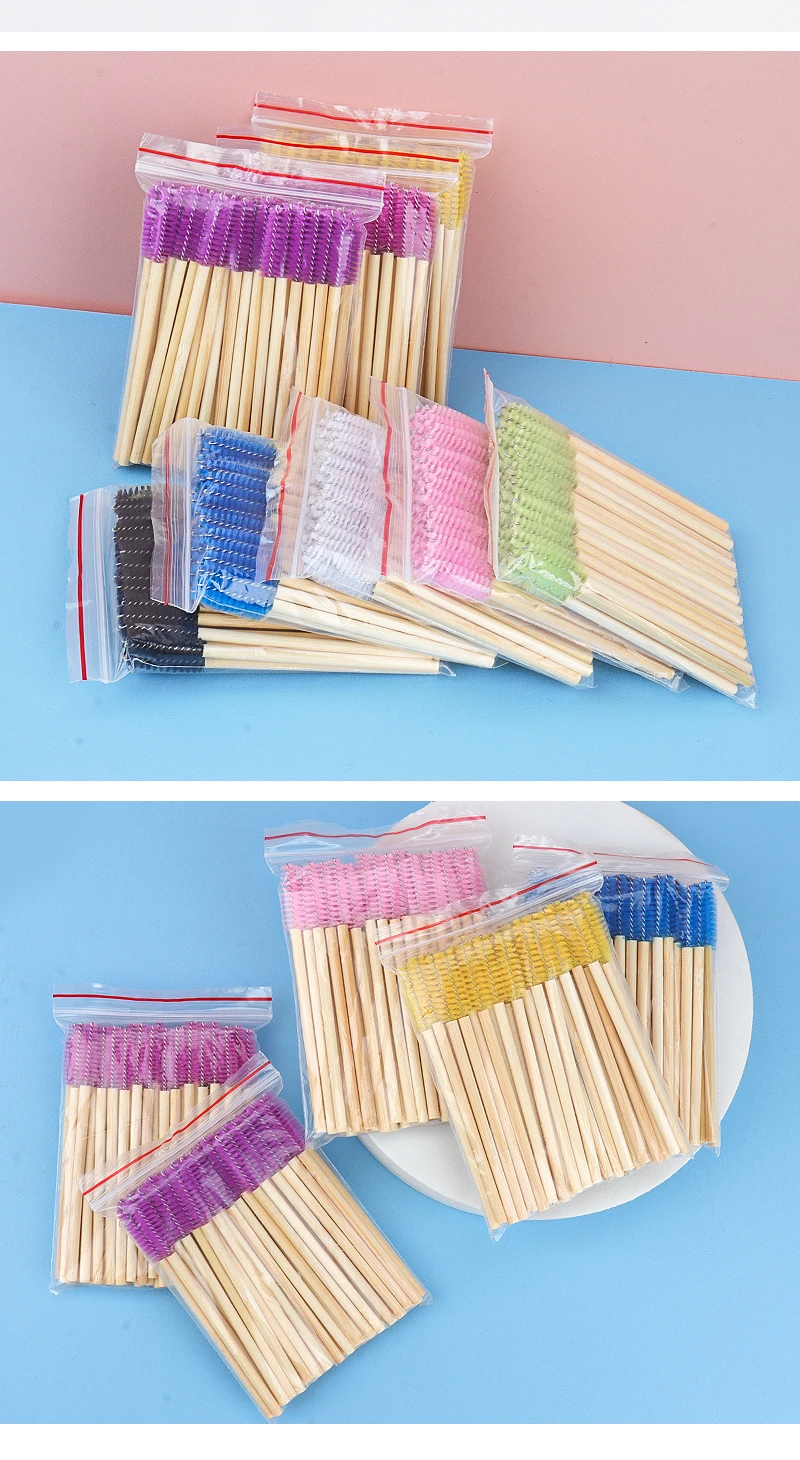 50 шт., бамбуковые кисти для ресниц с ручкой, одноразовые кисти для бровей, ресницы для наращивания, тушь для ресниц, палочки, аппликатор, женские инструменты для макияжа