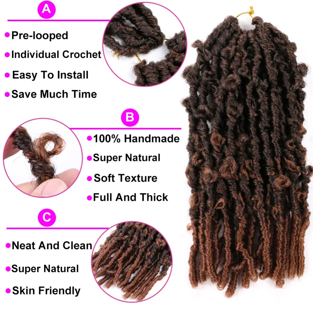Наименование товара: вязанные крючком волосы с бабочками Длина: 14 дюймов Вес: 80 г Количество в упаковке: 20 нитей Цвет: 1B,T27,T30,Tbug Потребность в полной головке: 7-8 упаковок