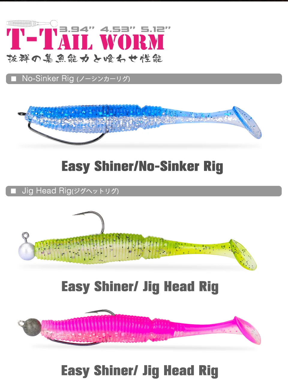 4. Built with an Oval high weight body, the T-tail bait is ideal for rigging on a variety of weightless applications