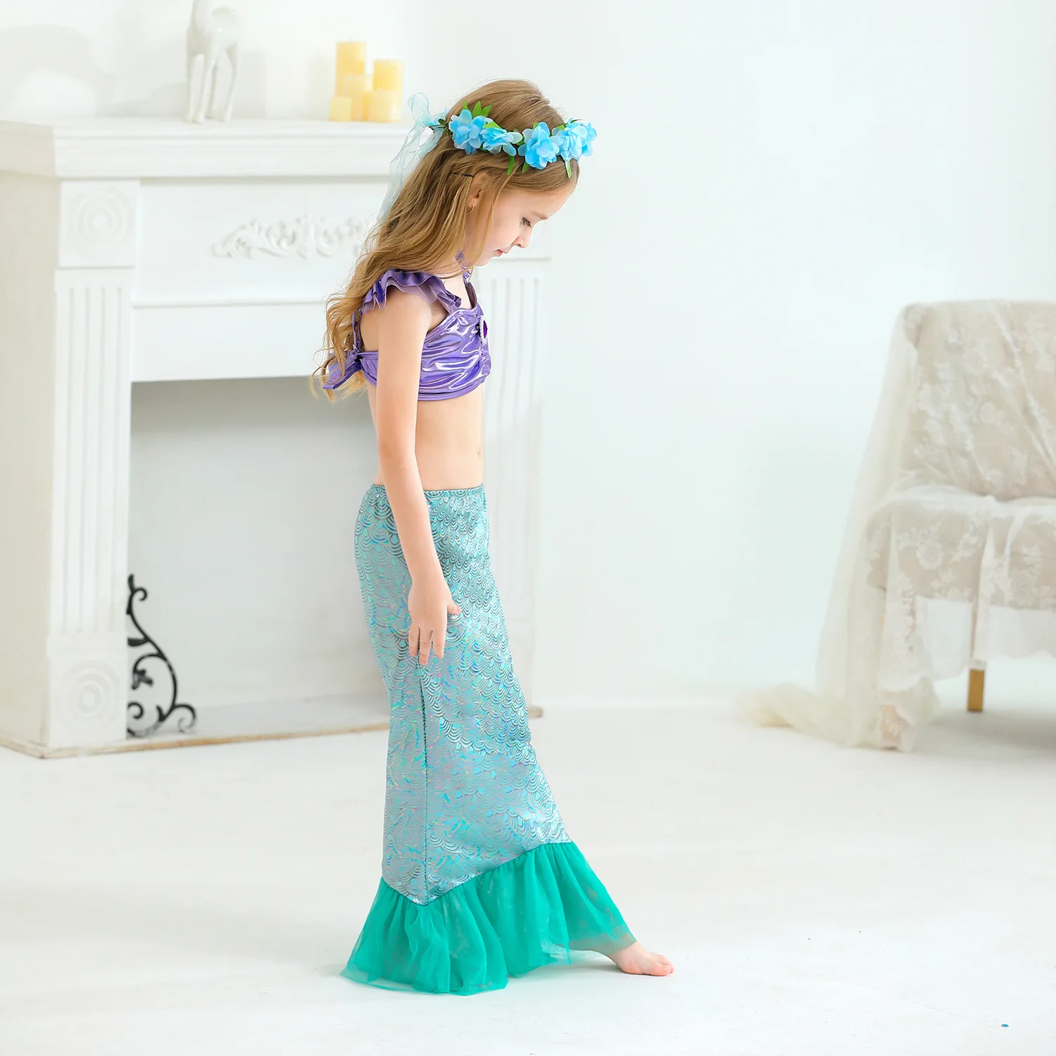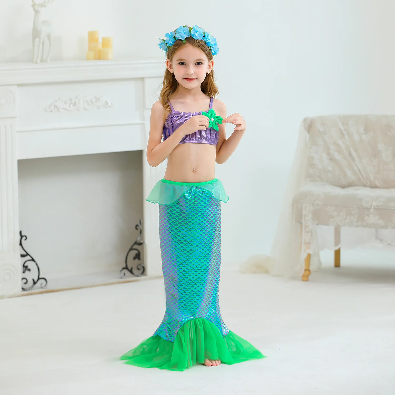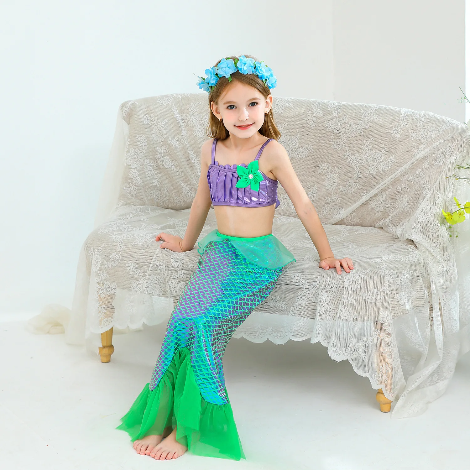 2022 платье принцессы Ариэль для девочек; Летний костюм русалки для костюмированной вечеринки с хвостом русалки; Детский купальный костюм для девочек; Костюм Русалки для девочек