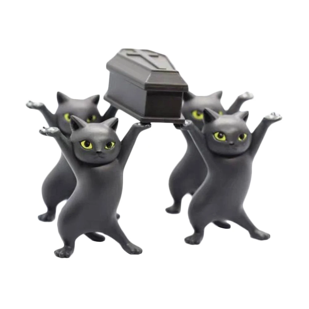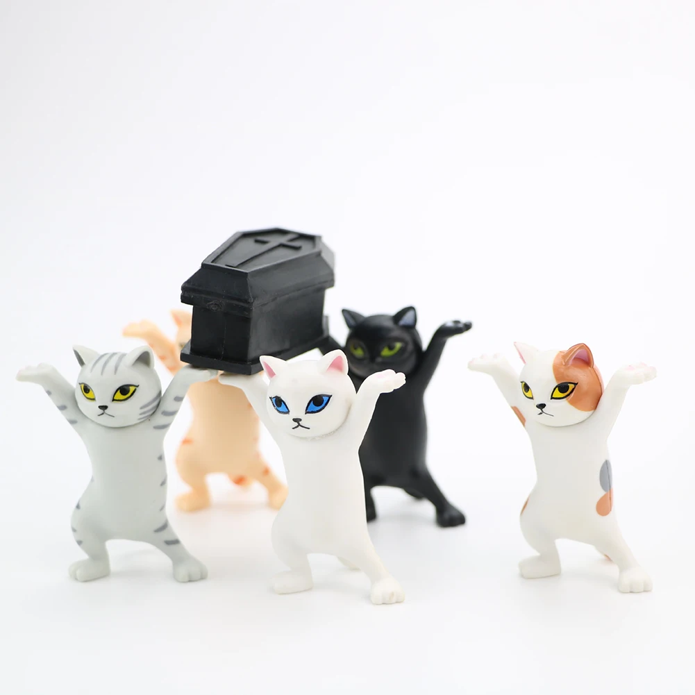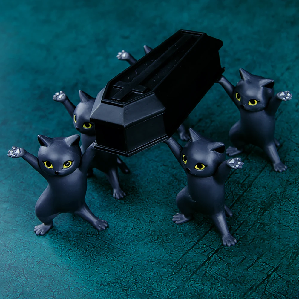 Упаковка: opp мешок; Материал: ПВХ; Размеры: около 5-5,5 см высоком каблуке; Вес: около 0,1 кг/компл.; Использование: украшение торта, игрушки, коллекции, кукольный автомобиль, украшение микро-ландшафта; Упаковочный лист: A: 5 * кошка + 1 * гроб; B: 4 * кошка + 1 * гроб;